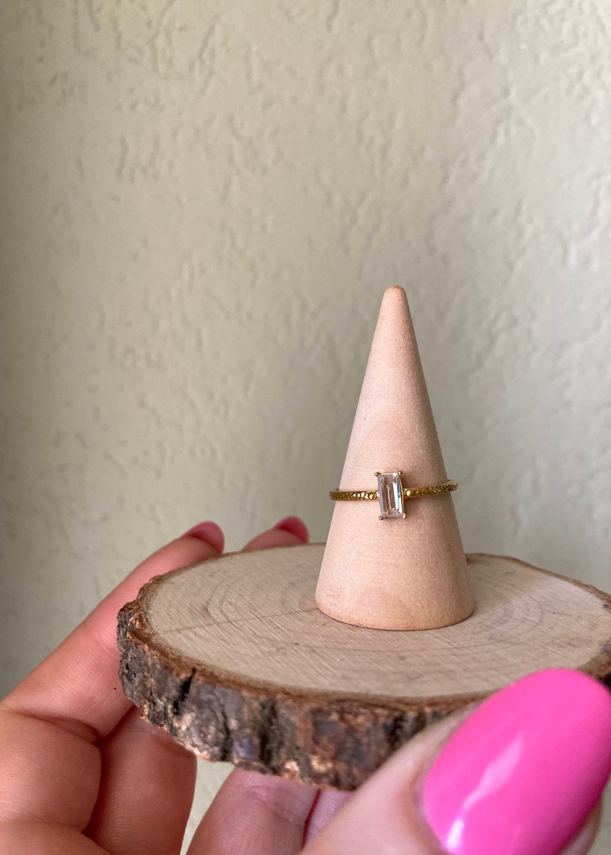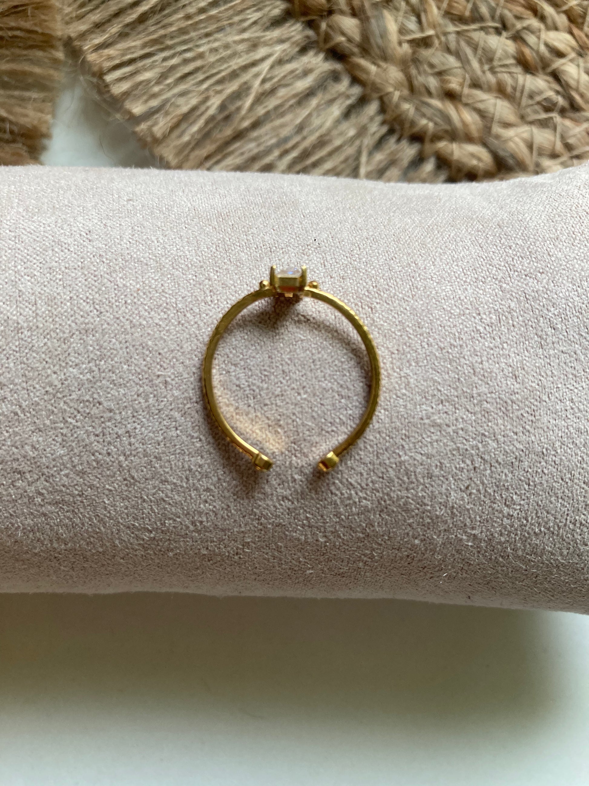 Anello regolabile in acciaio, versione gold e silver, con zircone trasparente