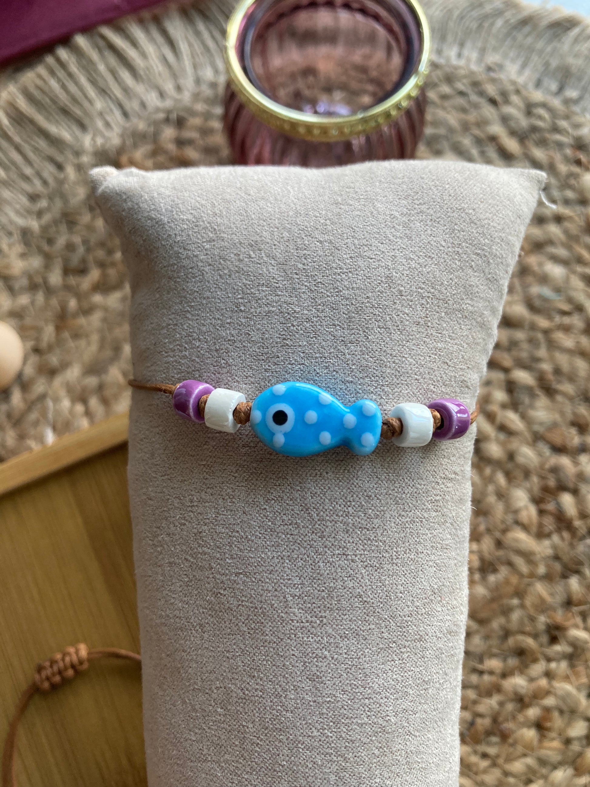 Nami significa onda in giapponese e mi piace collegare questo nome ai bracciali con cordino e pesce in ceramica per portare con noi, ogni giorno, un po' di mare!!!! Un piccolo sergno d'acqua sulla pelle!!! Ci sono diverse colorazioni e abbinamenti, li ho un po' suddivisi per semplificare tutto! Quindi prima di scegliere il colore ti consiglio di guardarli tutti!!! Sono realizzati a mano, il bracciale è regolabile tramite il nodo a scorrere!!