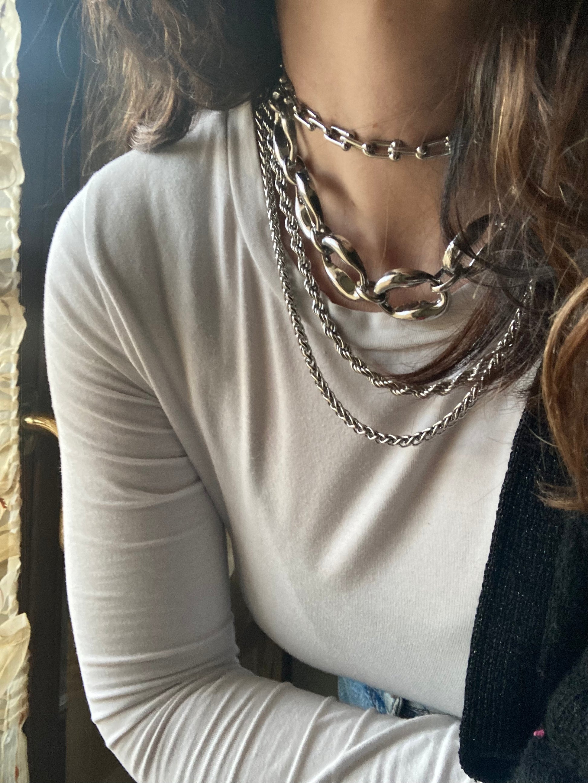 Chain Rebel ha un'anima forte e indipendente, perfetto per questo choker che non passa di certo inosservato!!! Bellissimo da indossare con capi in pelle, denim, ma anche con semplice t-shirt bianca o total black, versione rock! La lunghezza del choker è di 32cm più allungo di 8cm, per arrivare ad una massima lunghezza di 40cm! Disponibile nella versione Gold e Silver, in acciaio inossidabile!