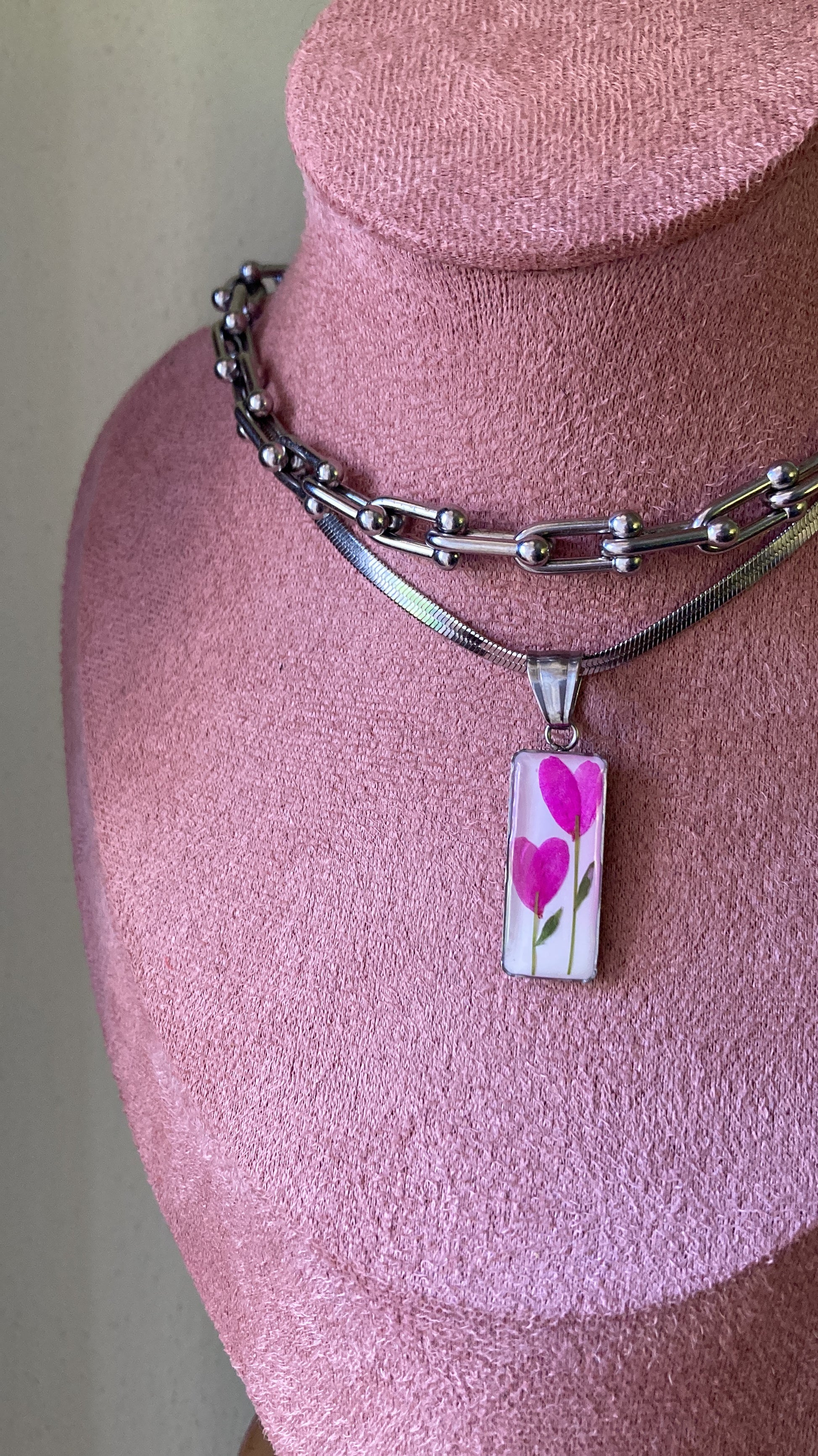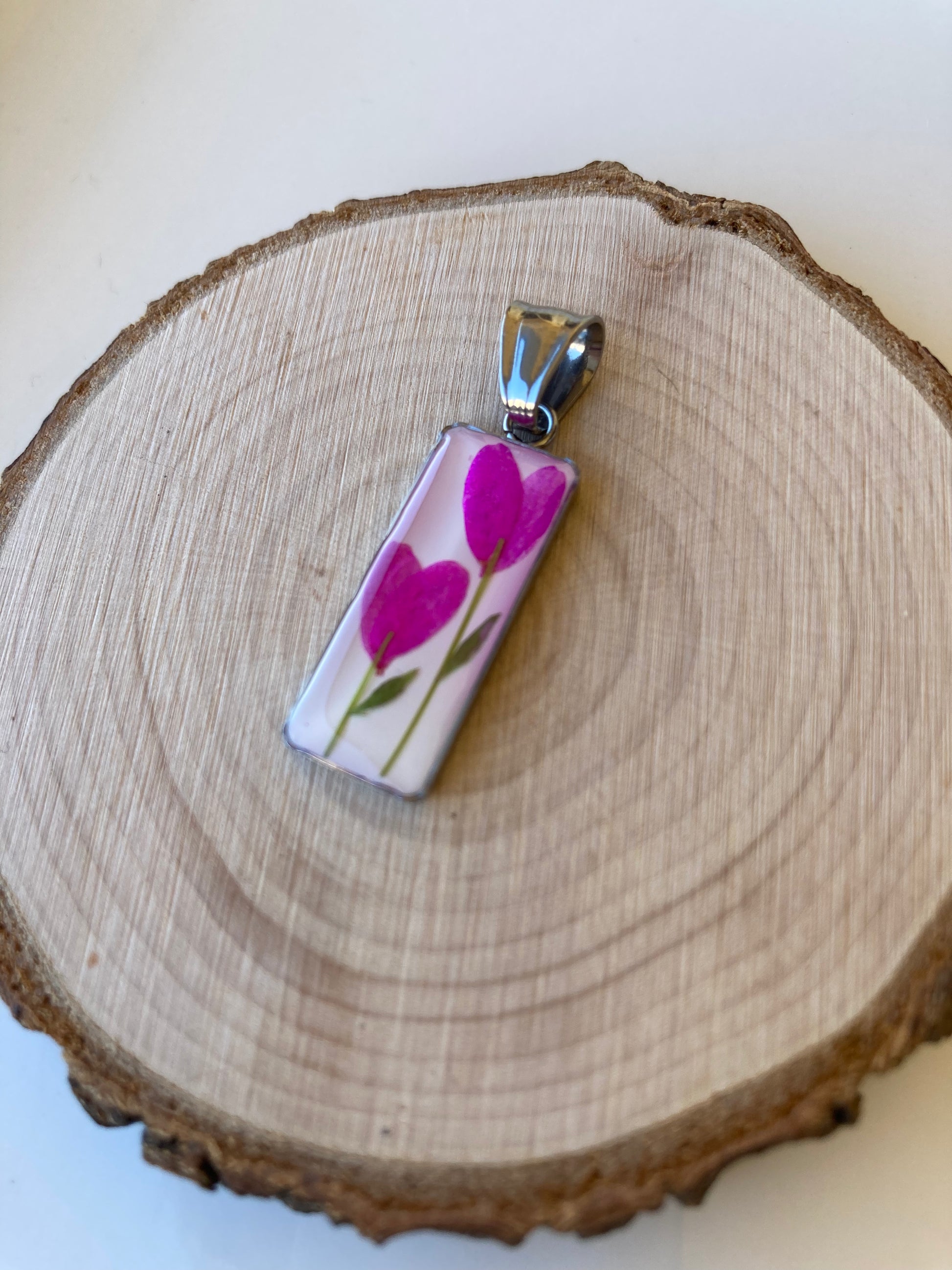 Pendente realizzato a mano con fiori veri, ricreati su base cabochon ricoperti da resina. Realizzati con tantissima cura. Ho inserito questi pendenti da pochissimo tempo, qui, tra le mie creazioni, e devo dire che amo particolarmente realizzarli. Amo sperimentare e mettermi alla prova.