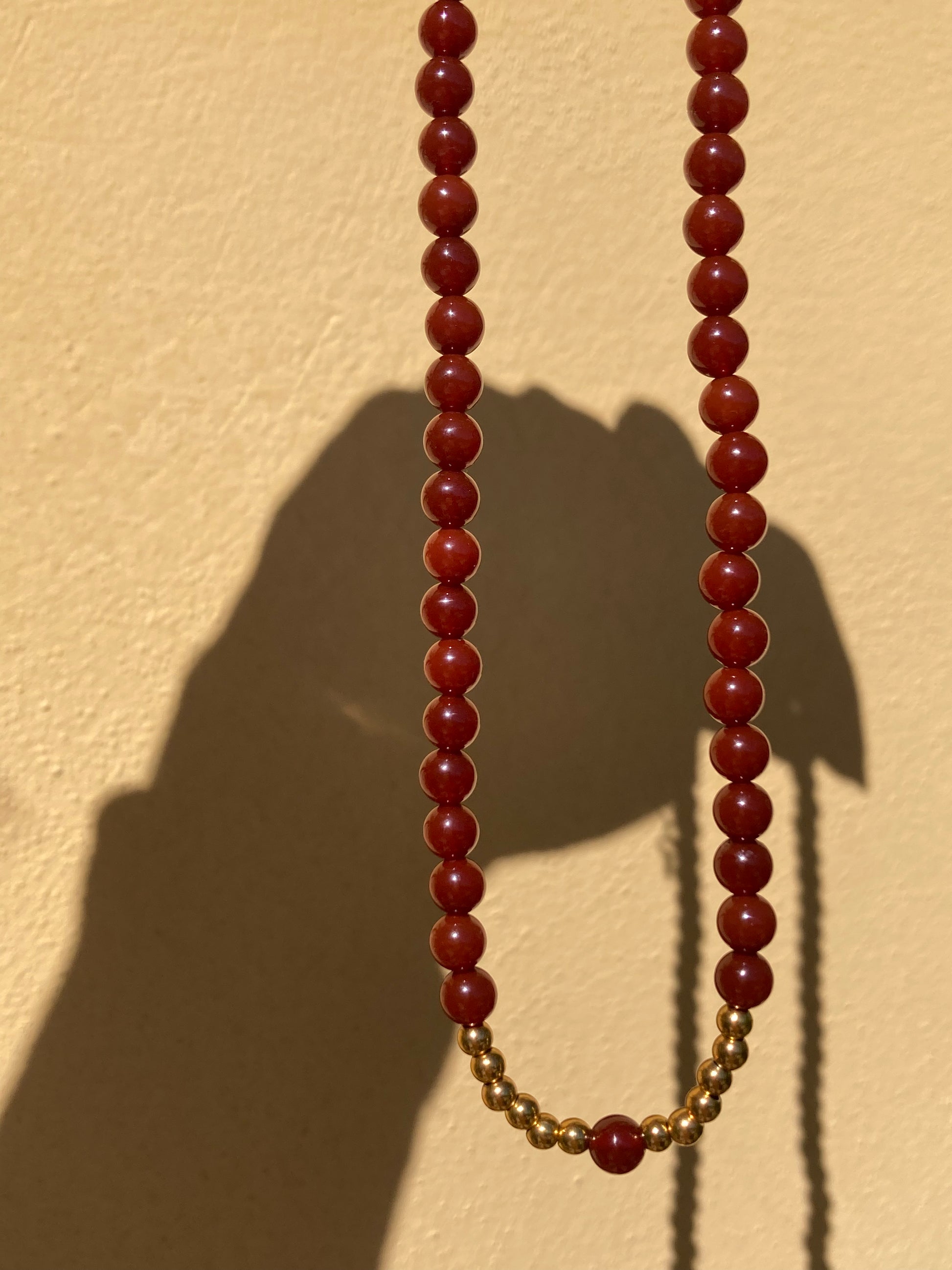 Collana realizzata a mano con pietre di Agata Corniola e pepite in acciaio dorato!