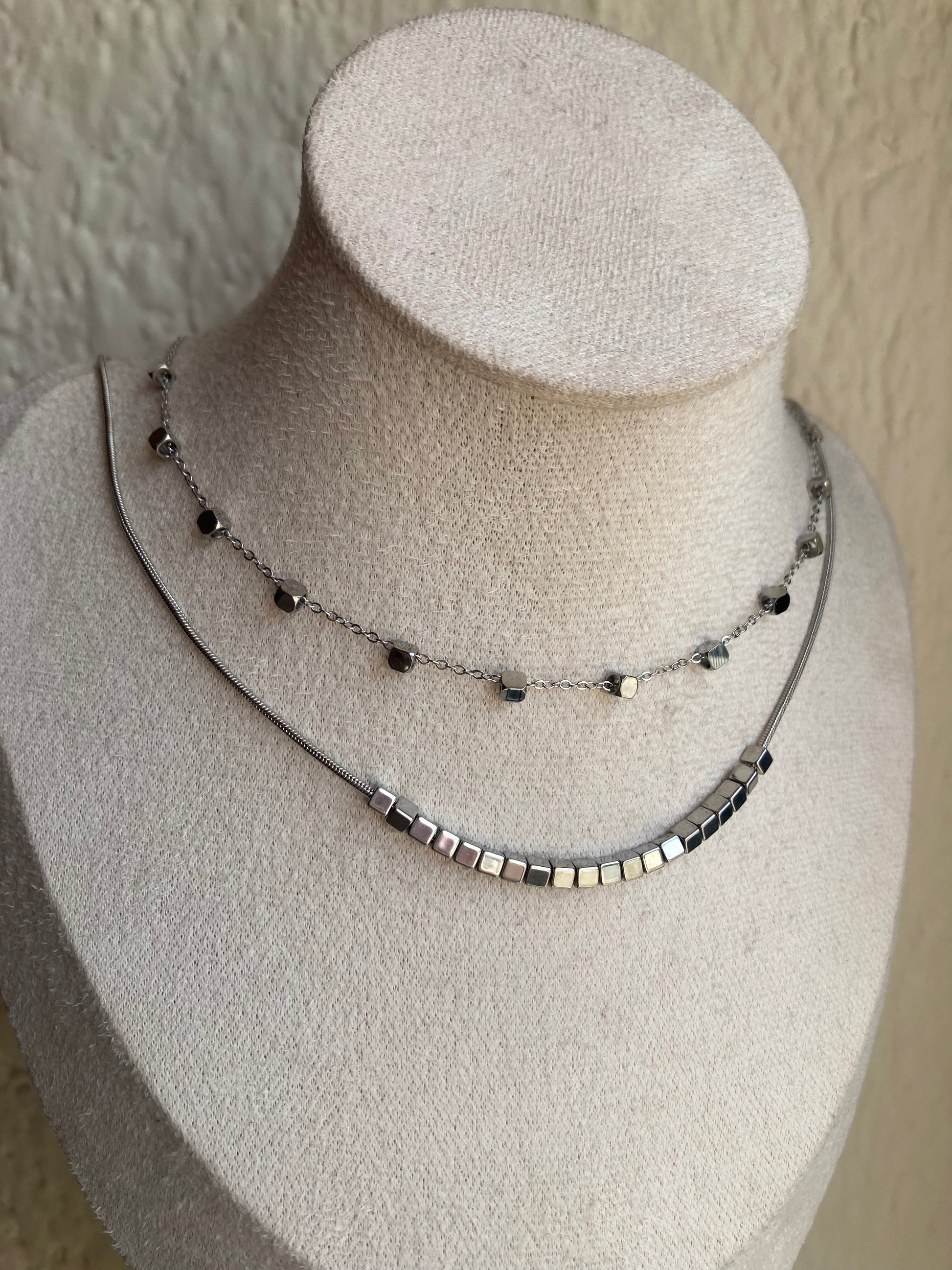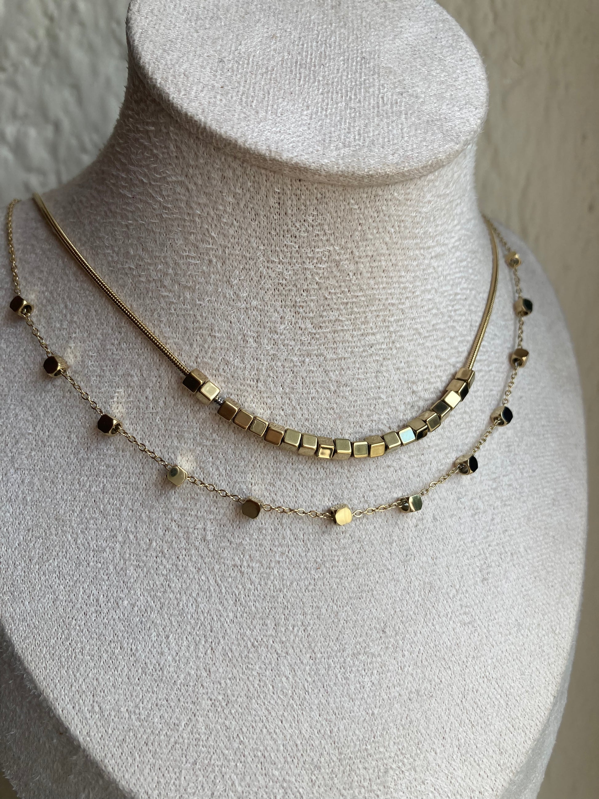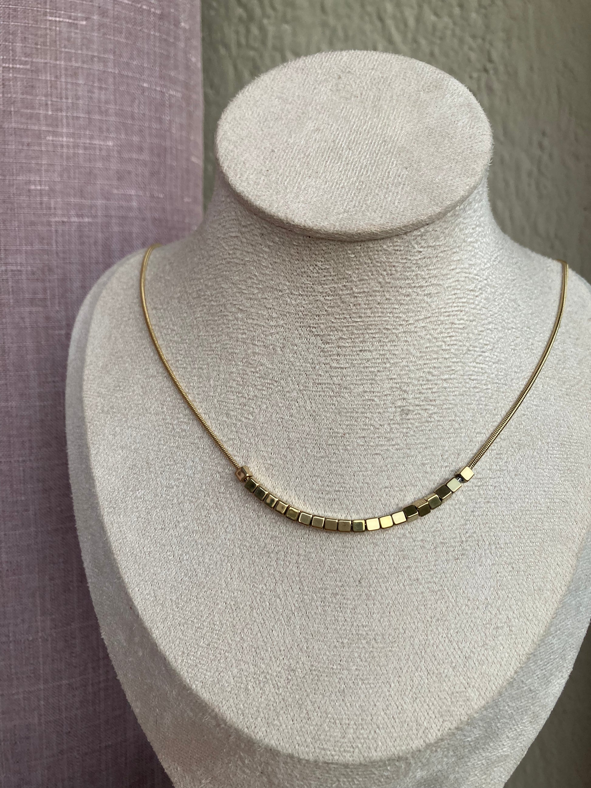 Al centro della collana ci sono tanti cubi che girano su se stessi ma, avendo i due cubi esterni fissati alla maglia della collana, non si spostano e rimangono quindi centrali!