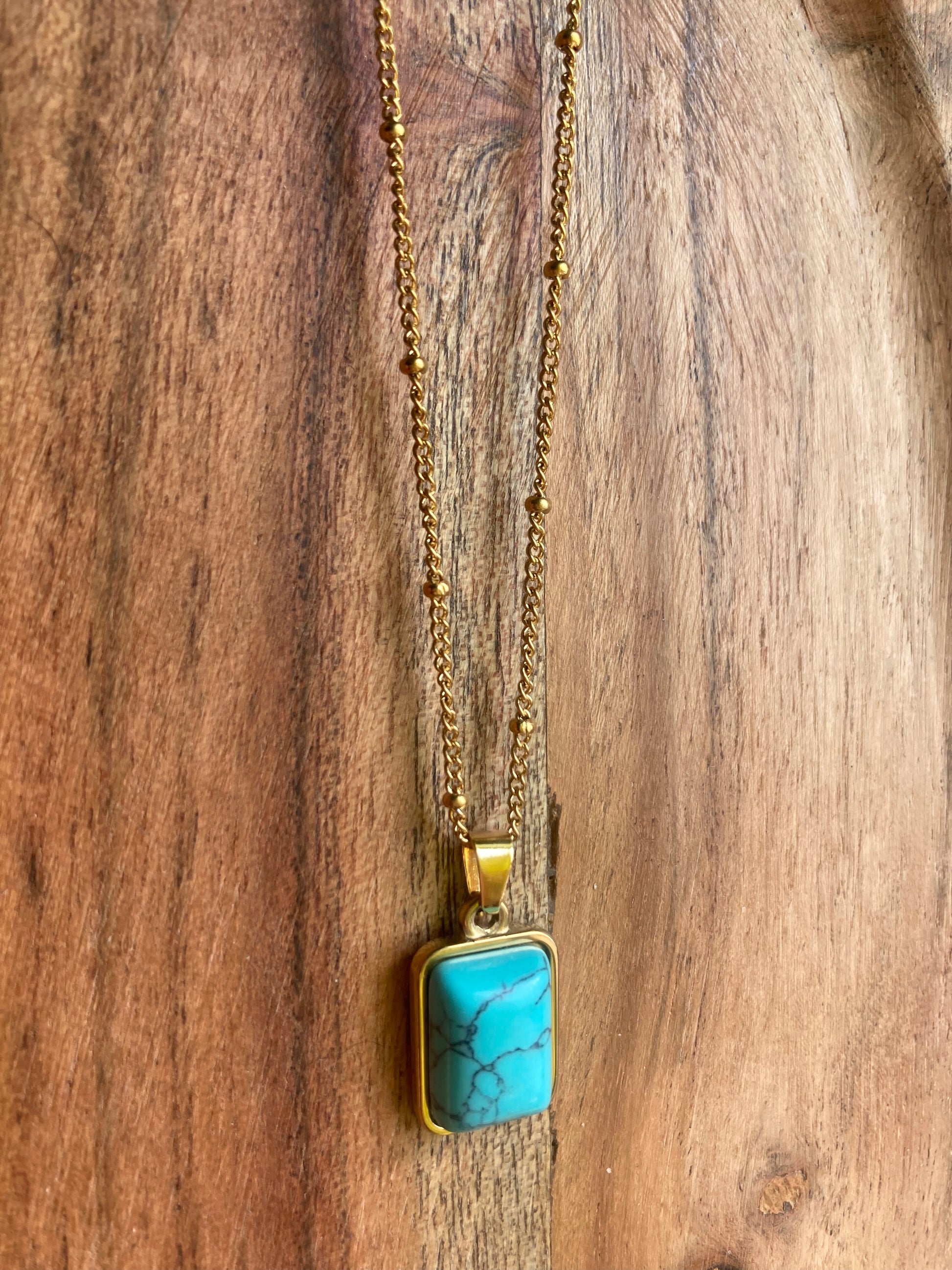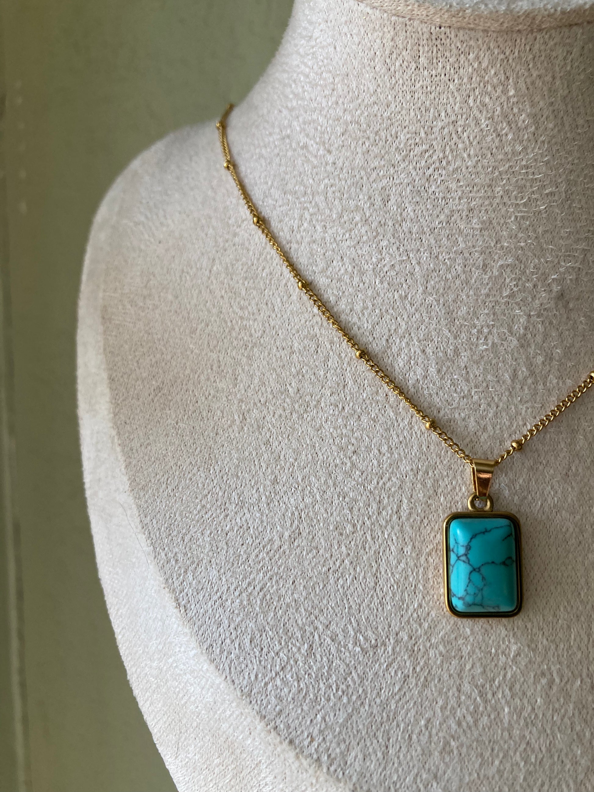 Collana In Acciaio Con Pendente Turchese Rettangolare