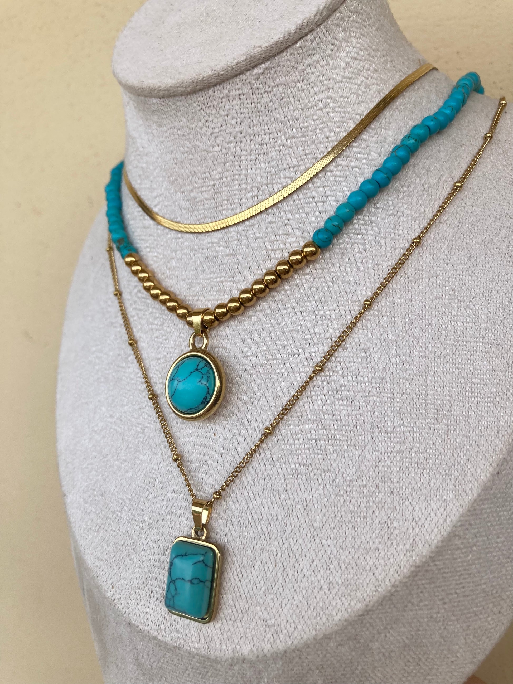 Come pendente la pietra di Turchese incastonata nel pendente in acciaio! Bellissima da indossare da sola, meravigliosa nelle combo!!!