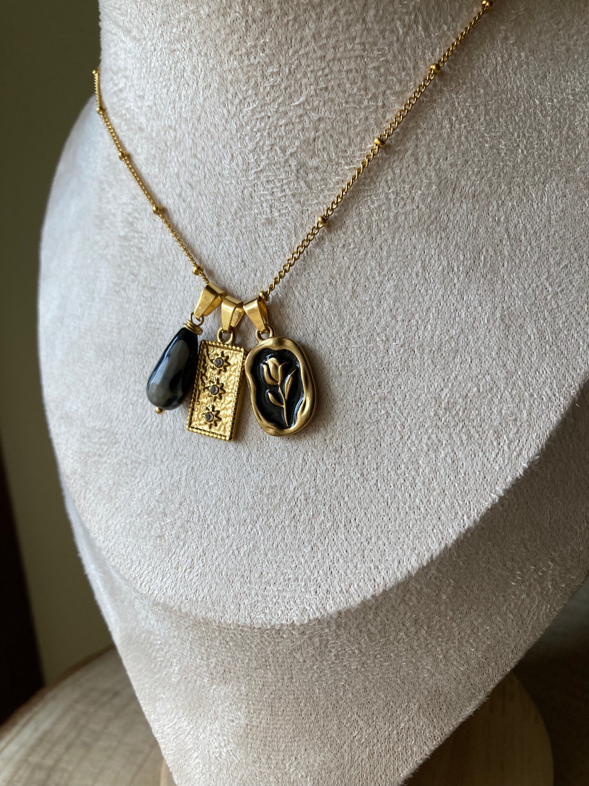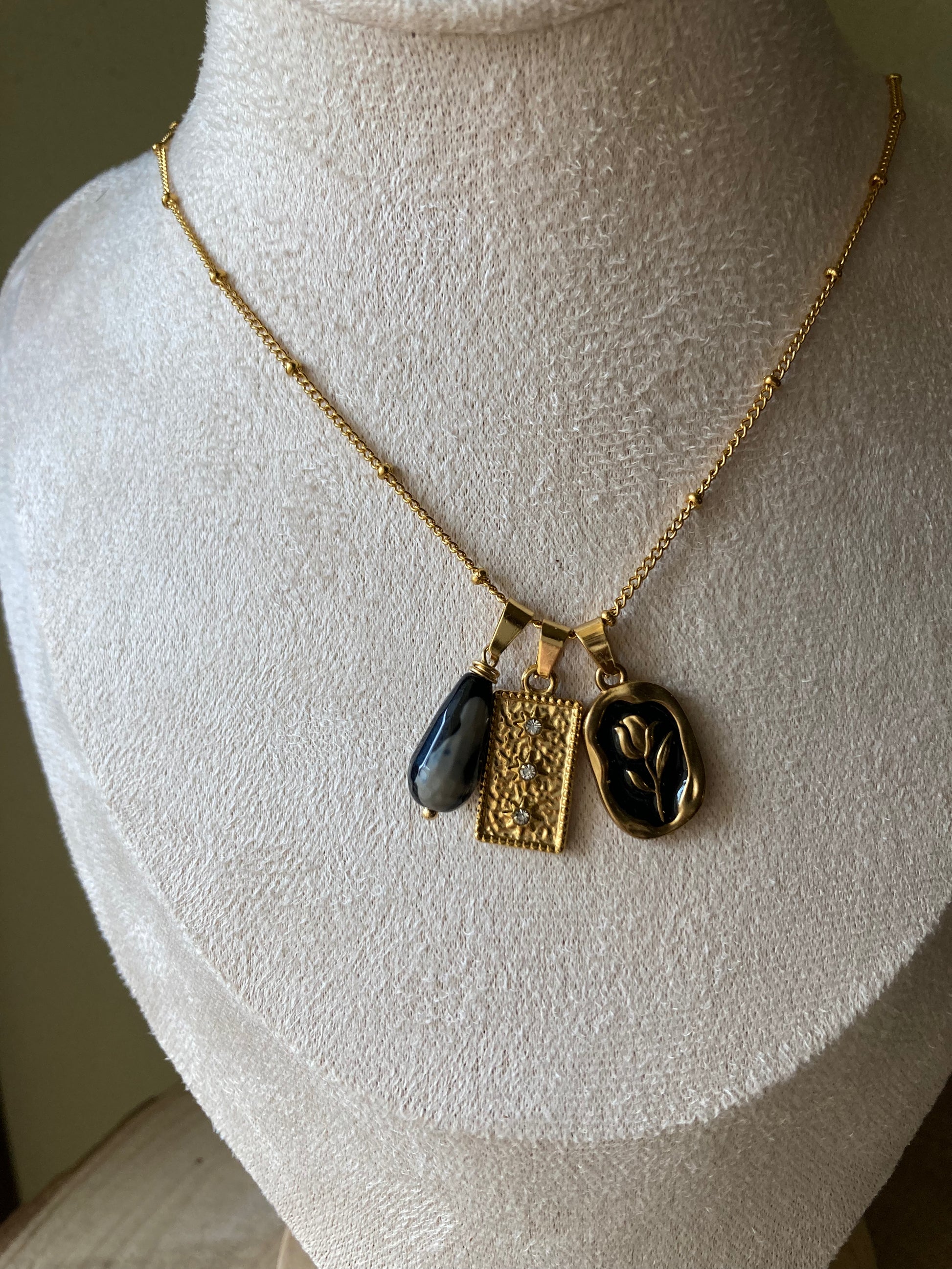 Collana in acciaio con tre pendenti