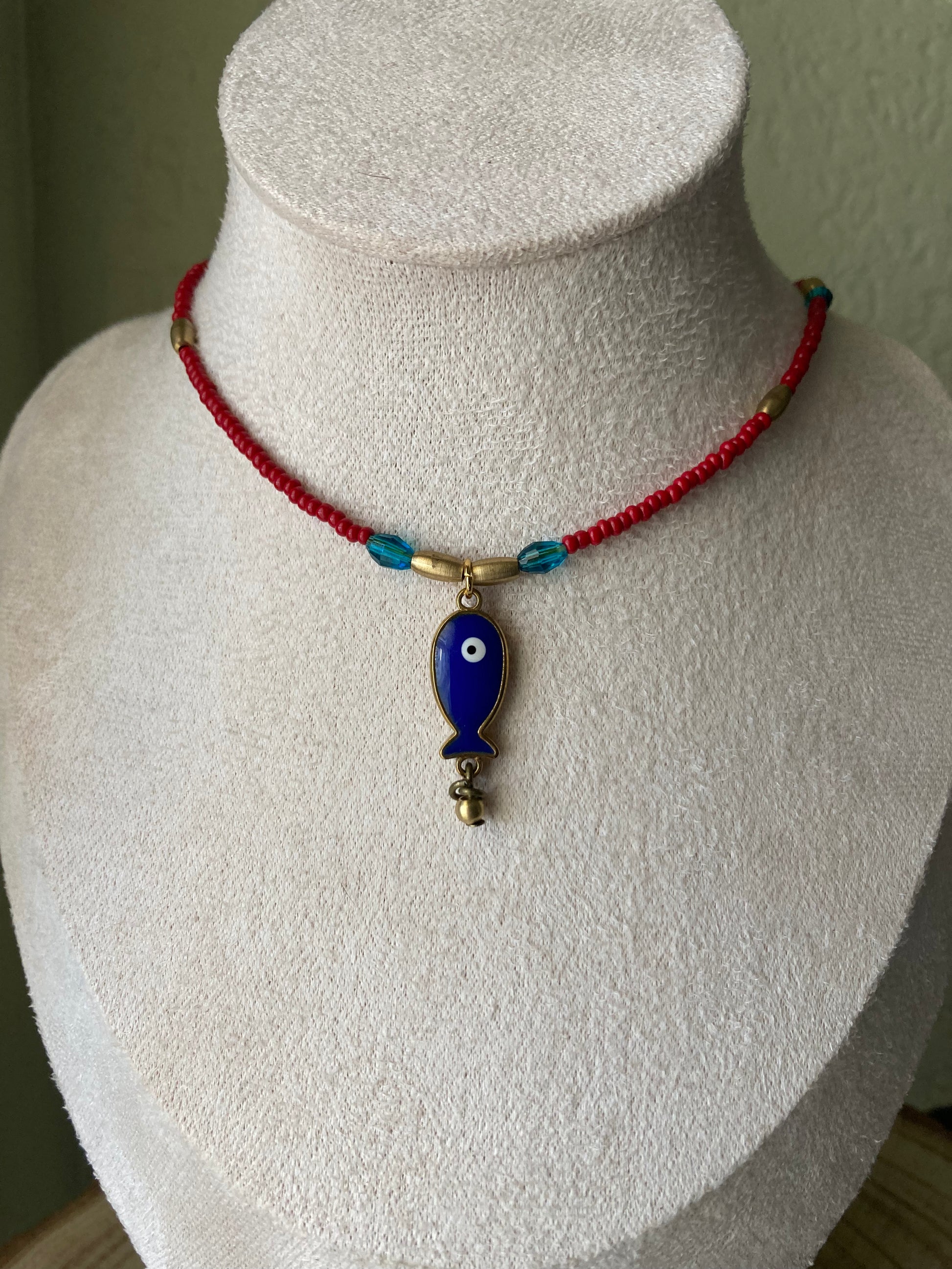 Collanina colorata con perline e pepite in ottone e un ciondolo a forma di pesciolino da portare sempre con te! Perfetta da mixare con altri bijoux o da indossare sola per un look 100% good vibes!!!!