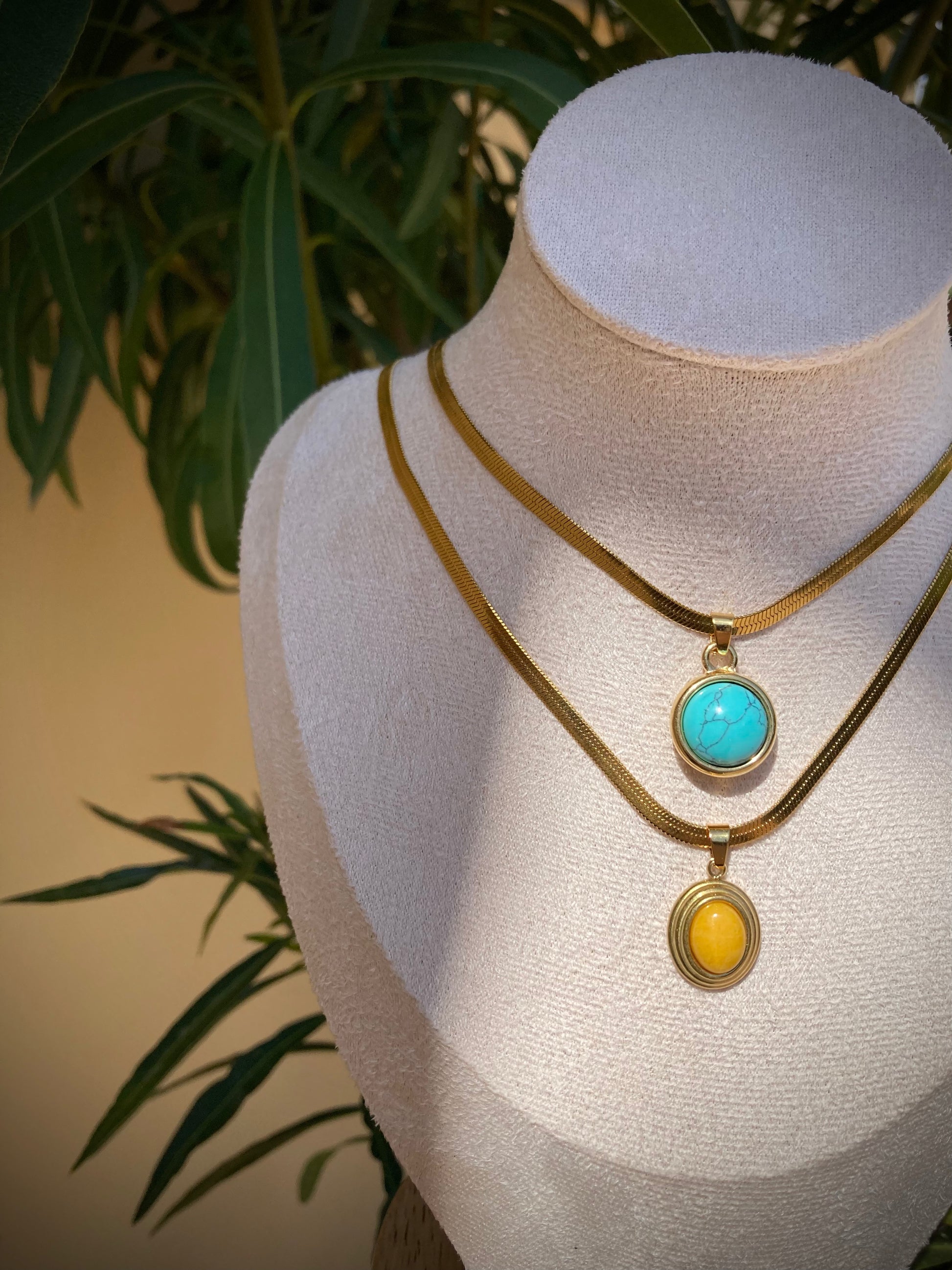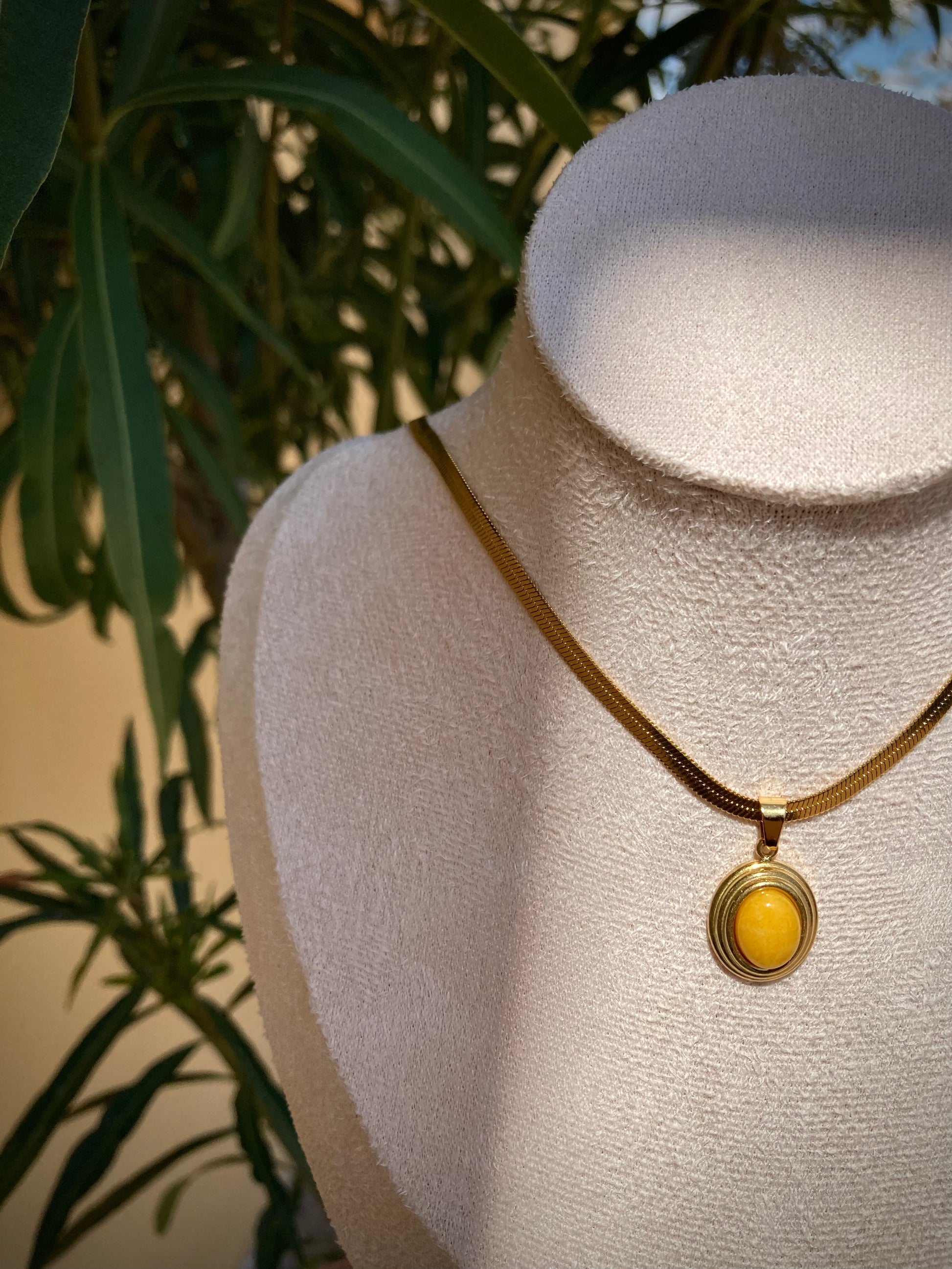 La bellezza della Collana Snake abbinata al pendente pietra di Agata gialla!!! Il giallo della pietra dona luminosità e sprigiona energia in chi la indossa, mistero ed eleganza...un mix perfetto!! La collana ed il pendente sono in acciaio, la lunghezza della snake è di 36cm più 5cm di allungo