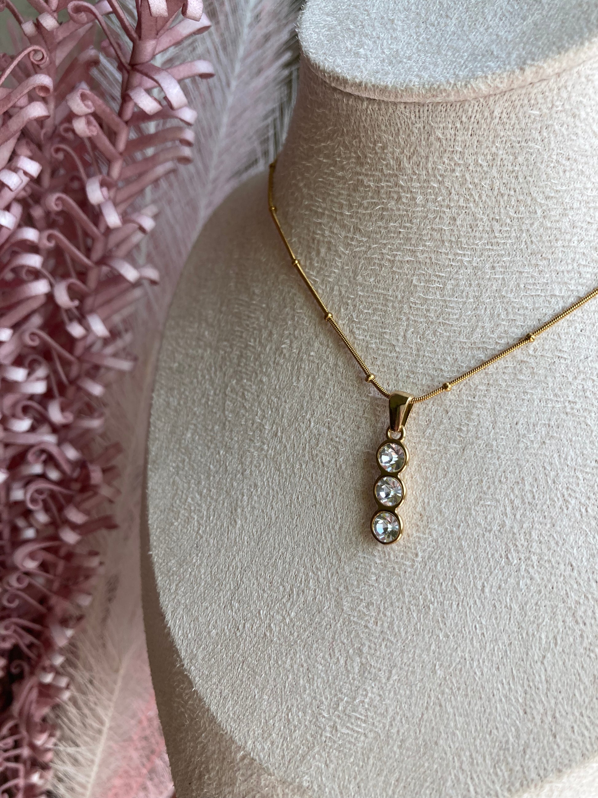 Collana in acciaio con tre punti luce, 3 zirconi luminosissimi!