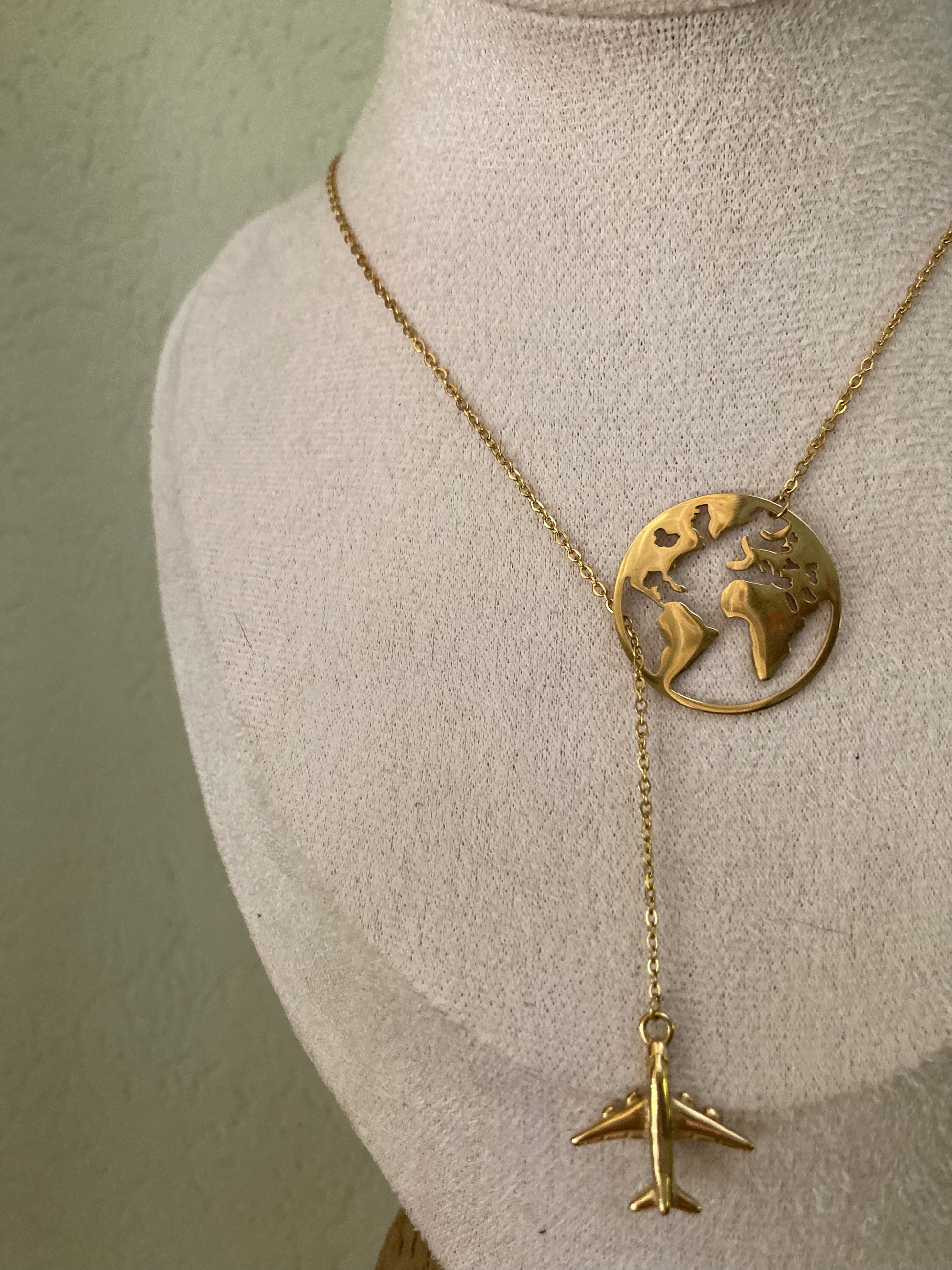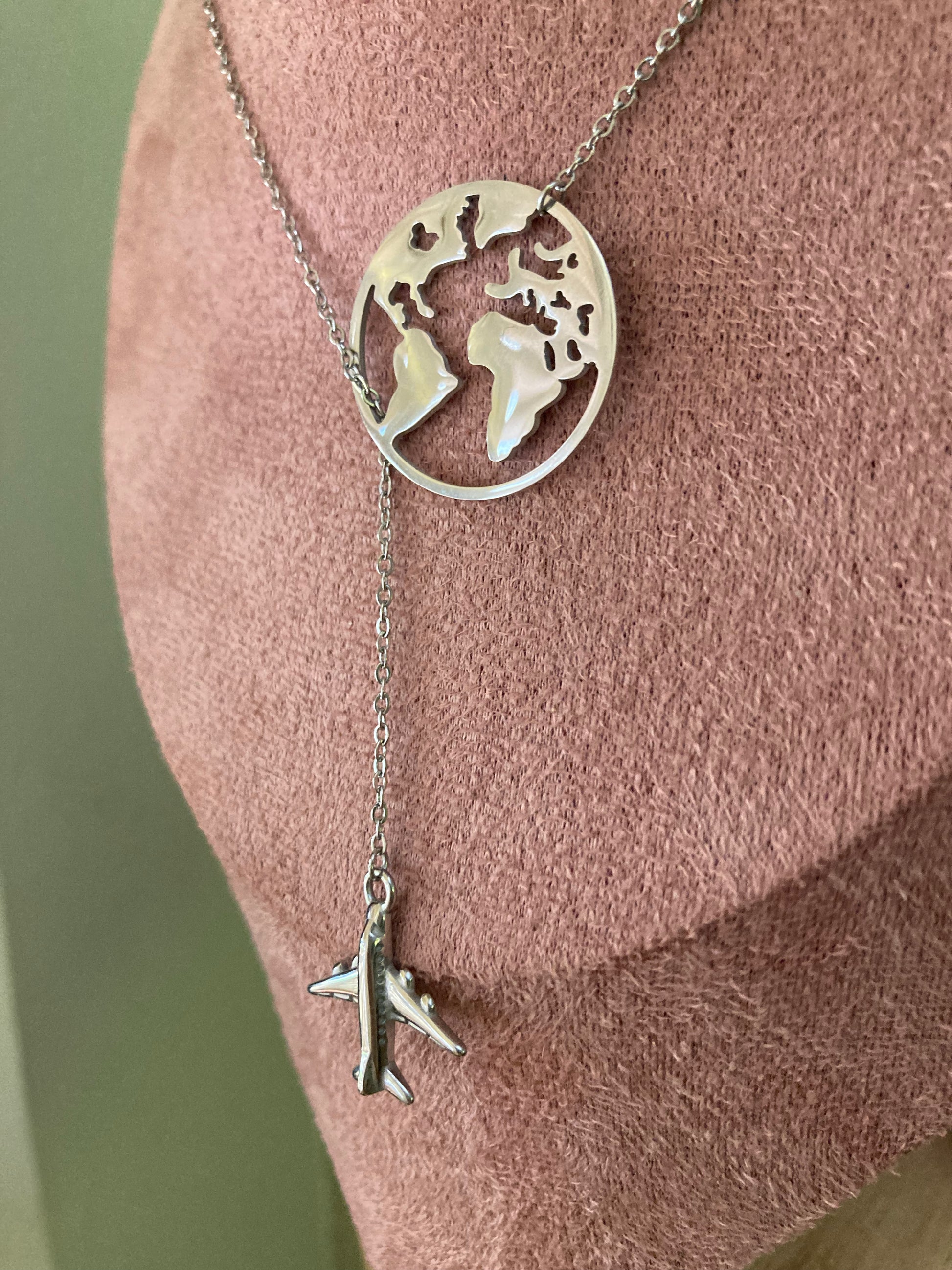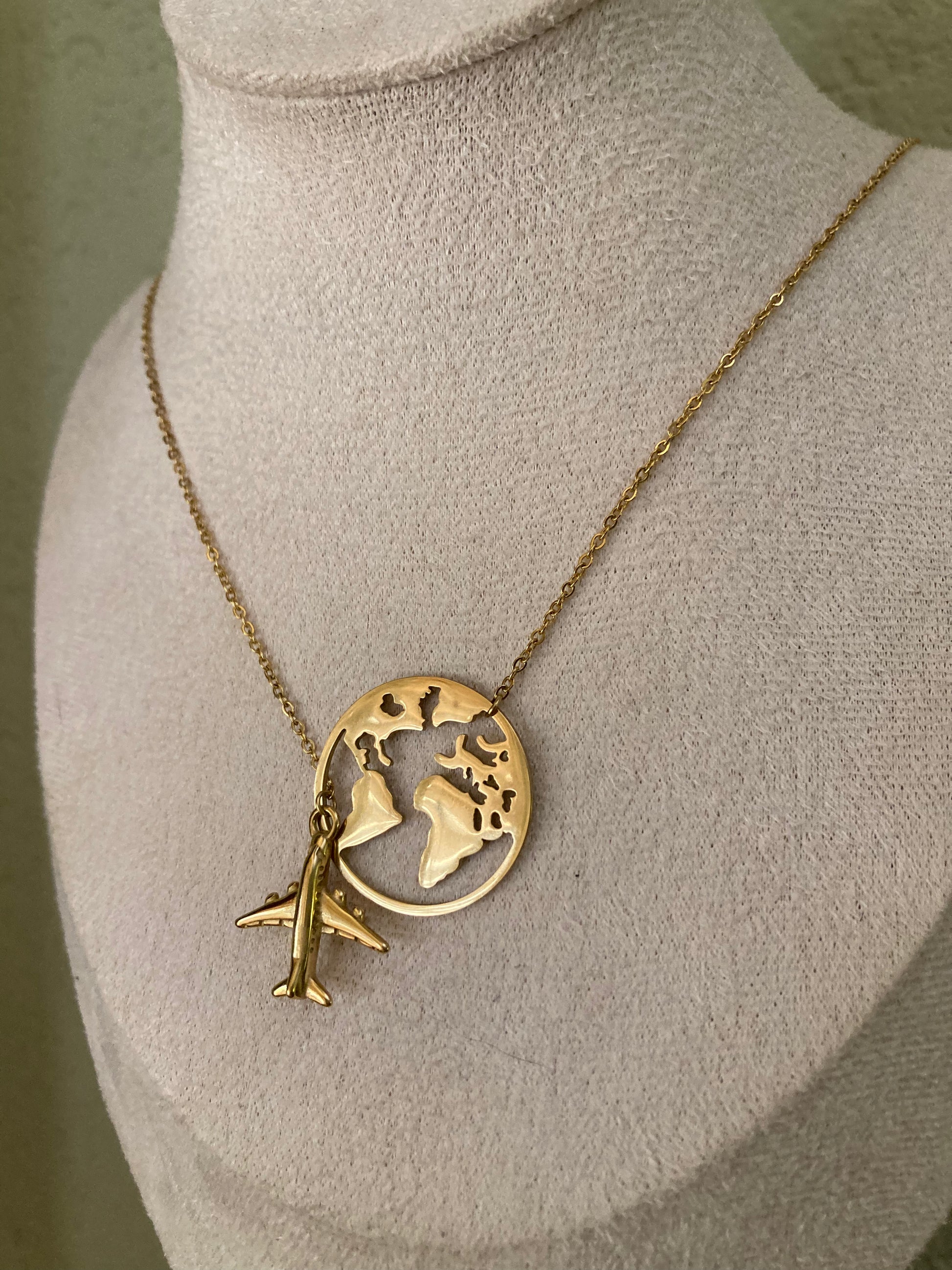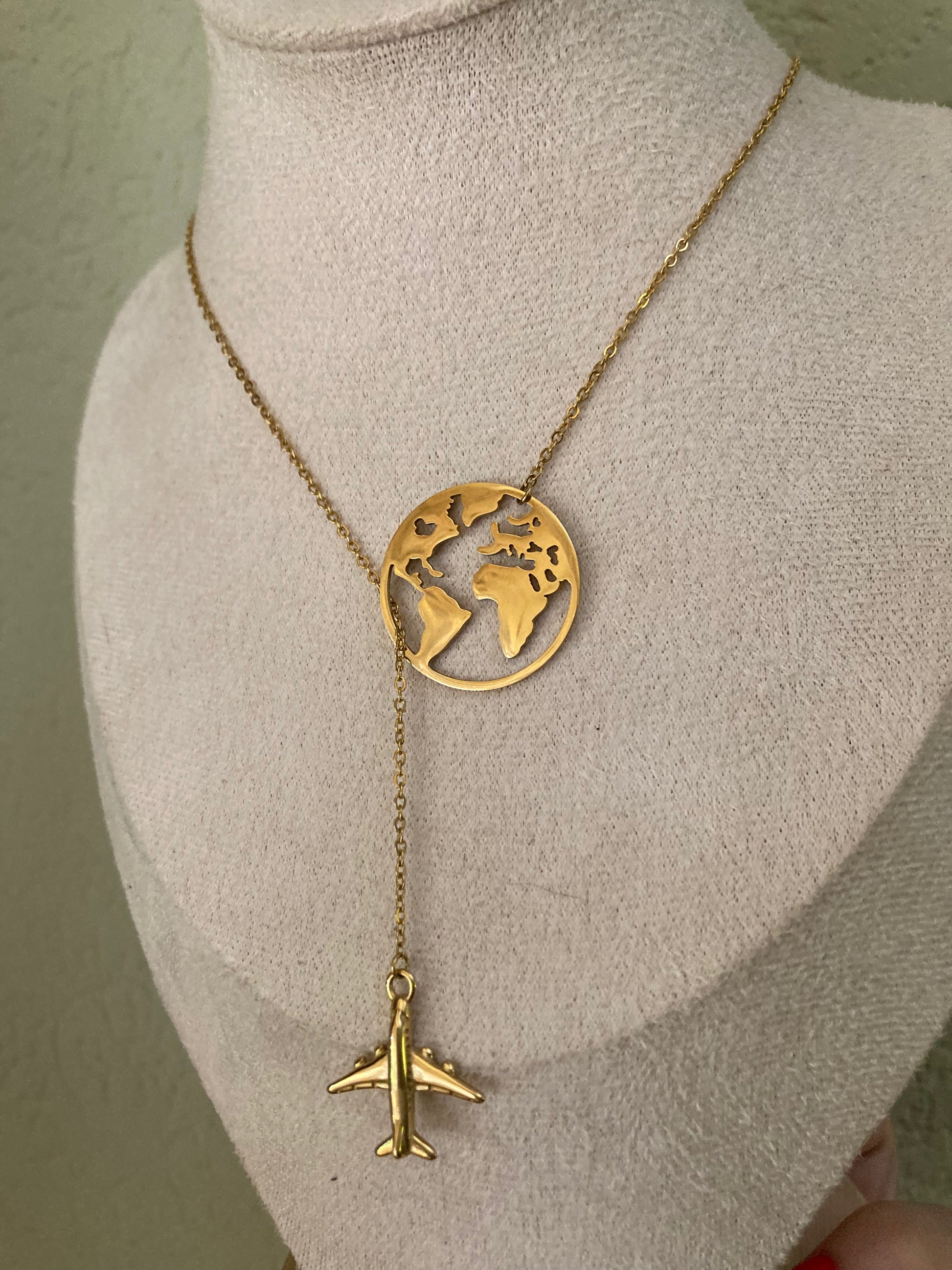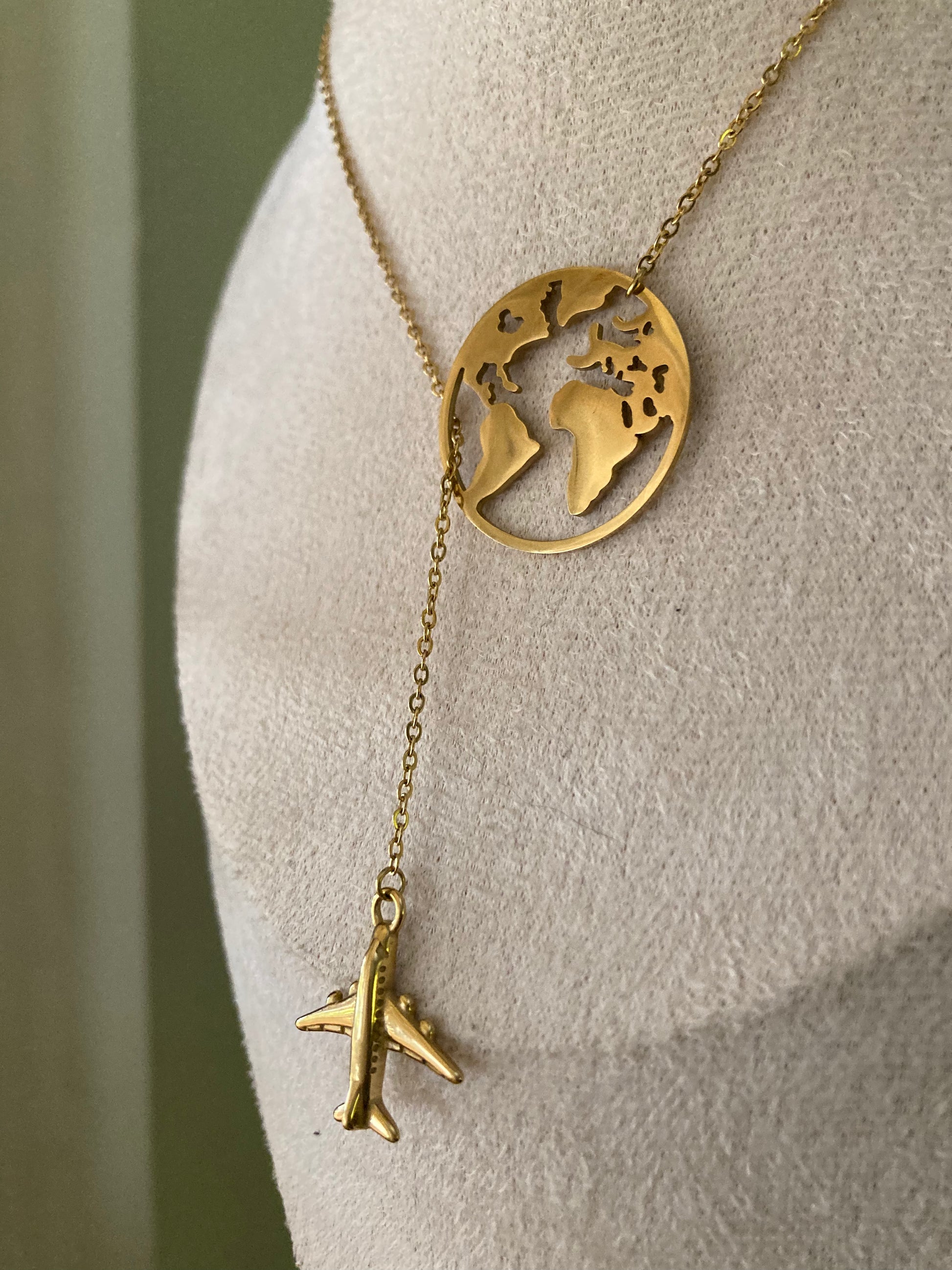 Realizzata in acciaio, finitura gold e silver; la caterna è regolabile, la parte con il ciondolo dell'aereo si puo tirare più su o più giù a seconda di come la desideriamo!!! La collana ha anche un allungo di 5cm!