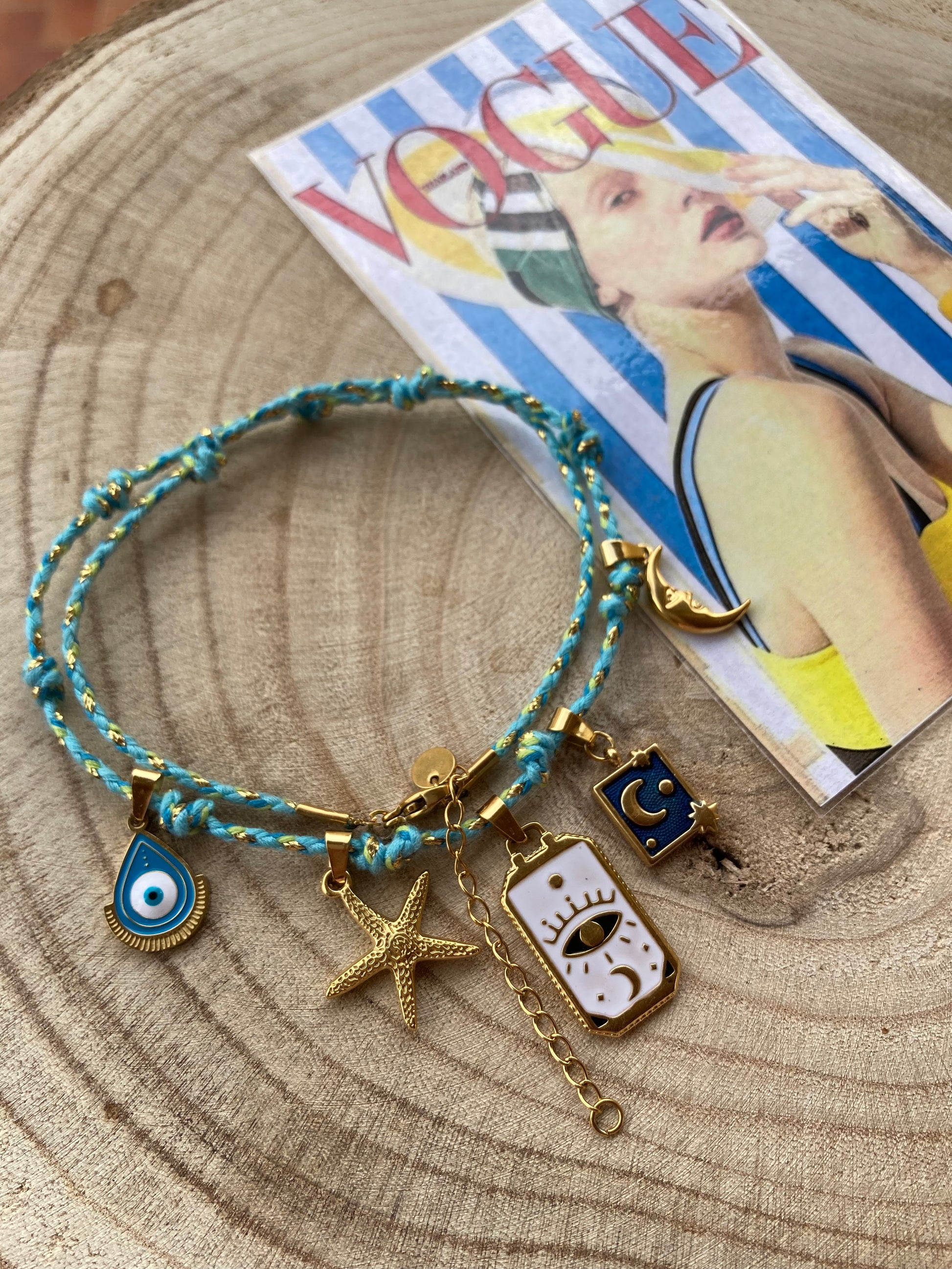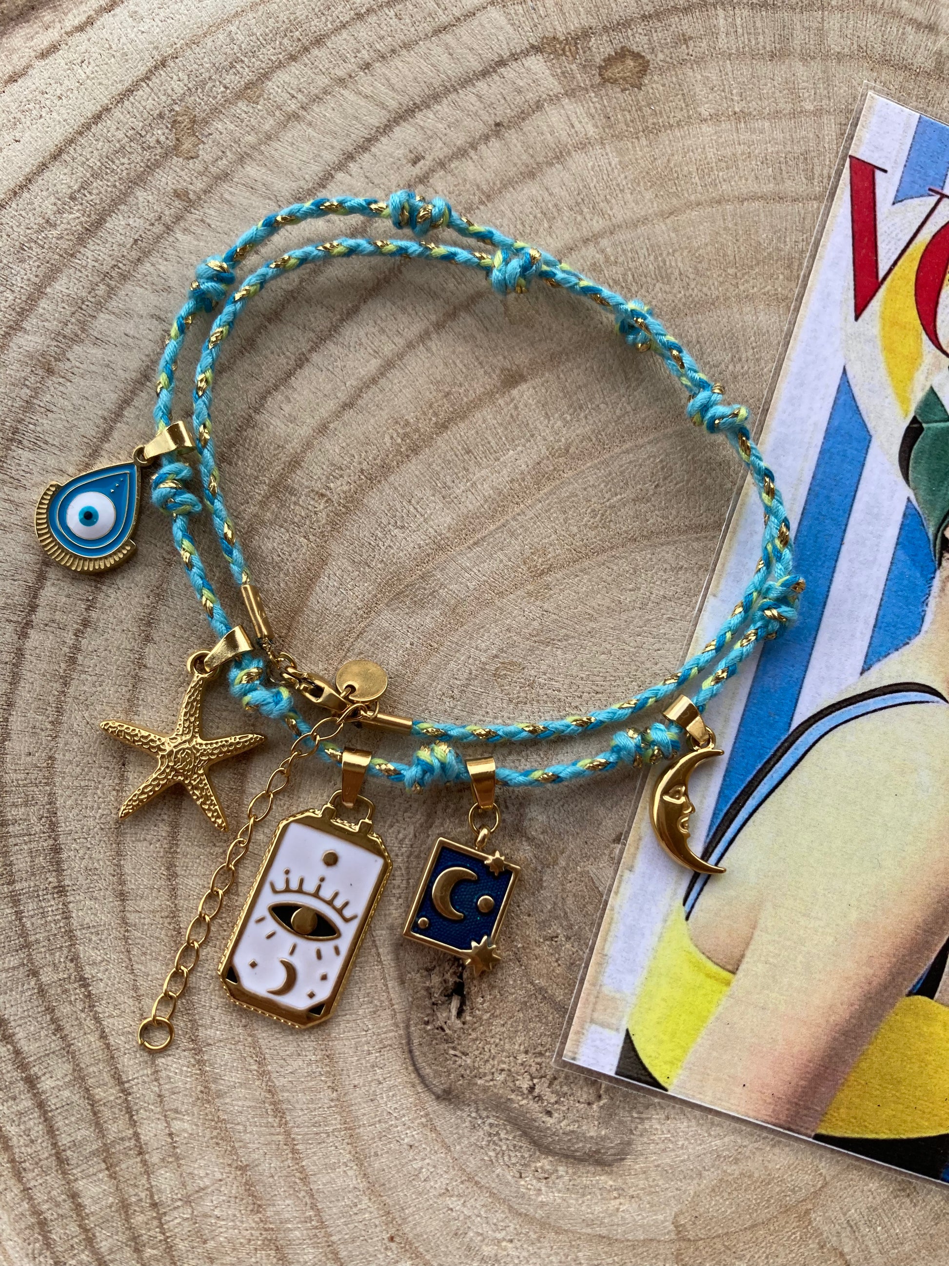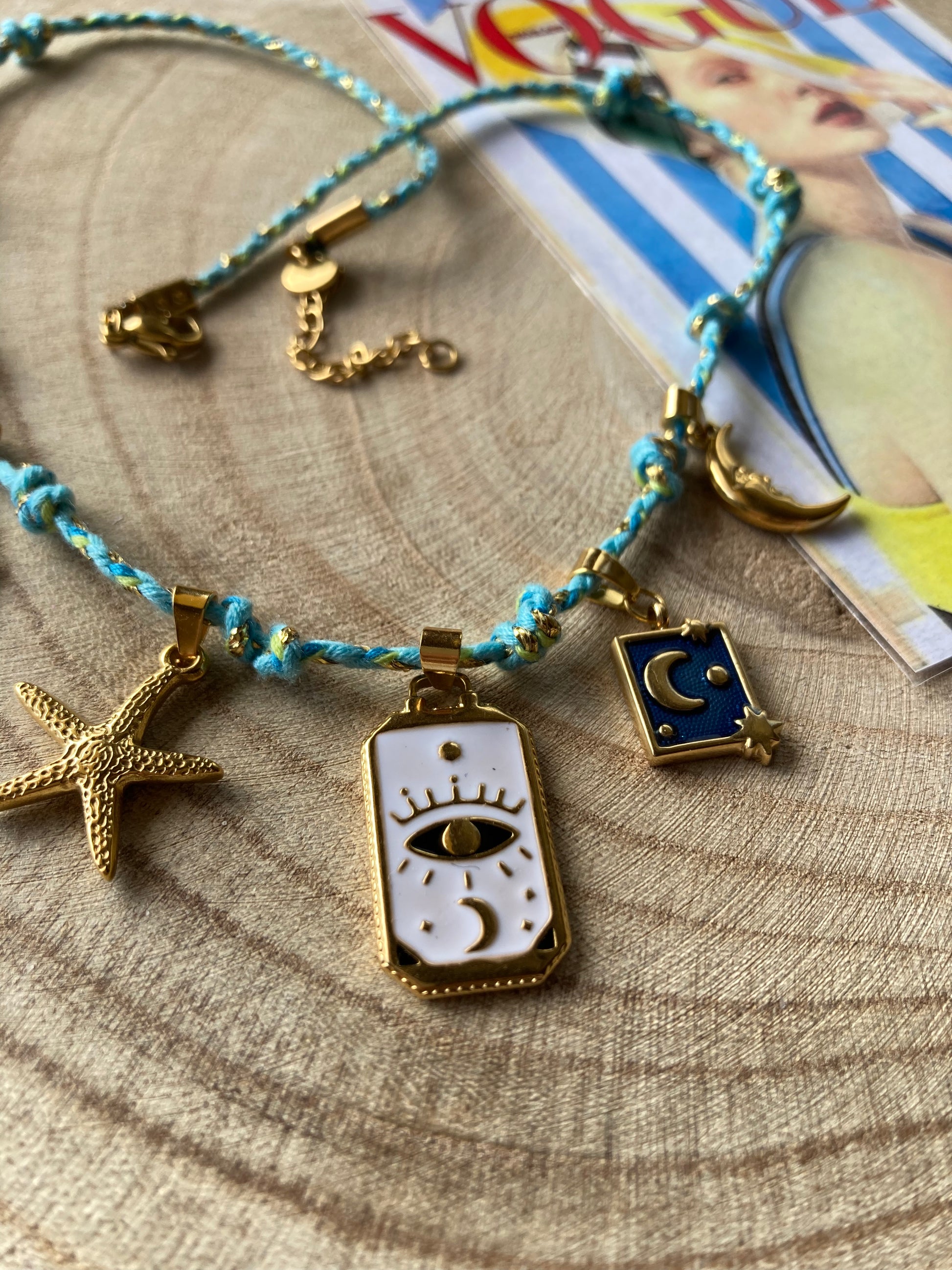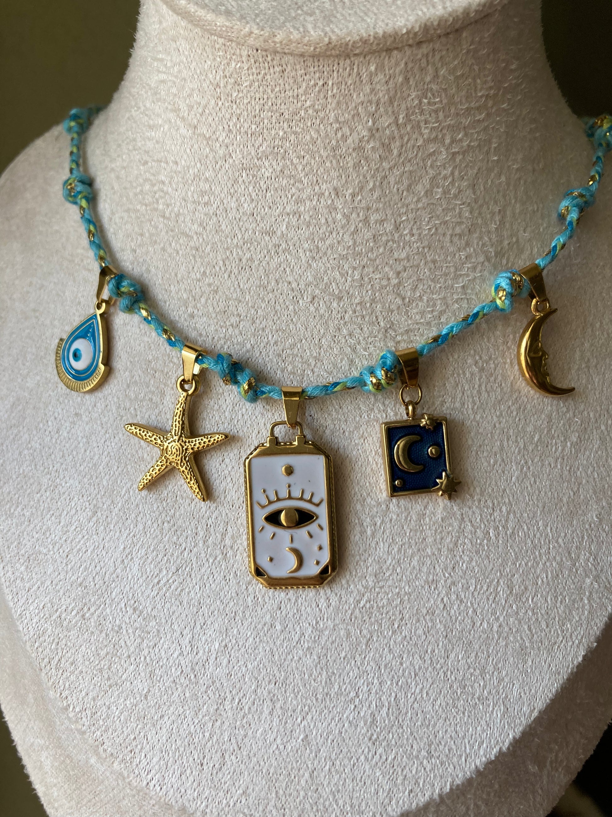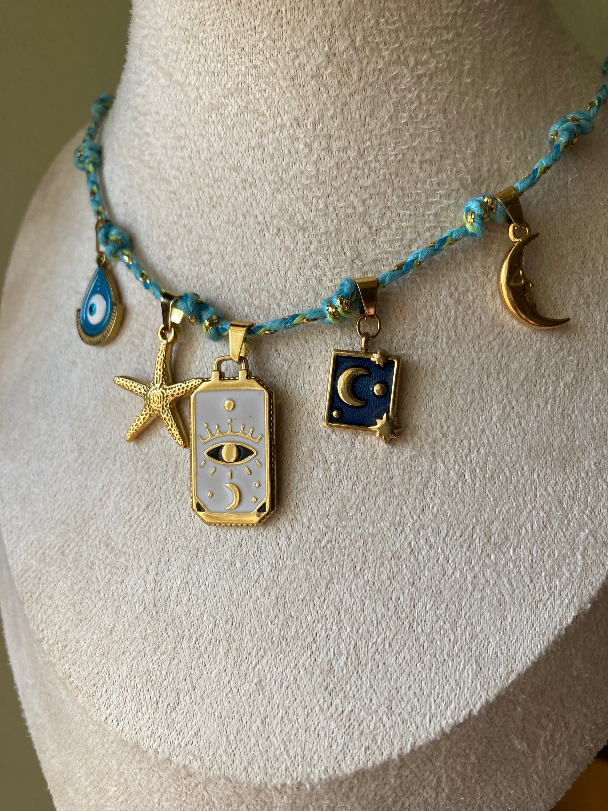 Collanina Kora con cordino azzurro 5 pendenti