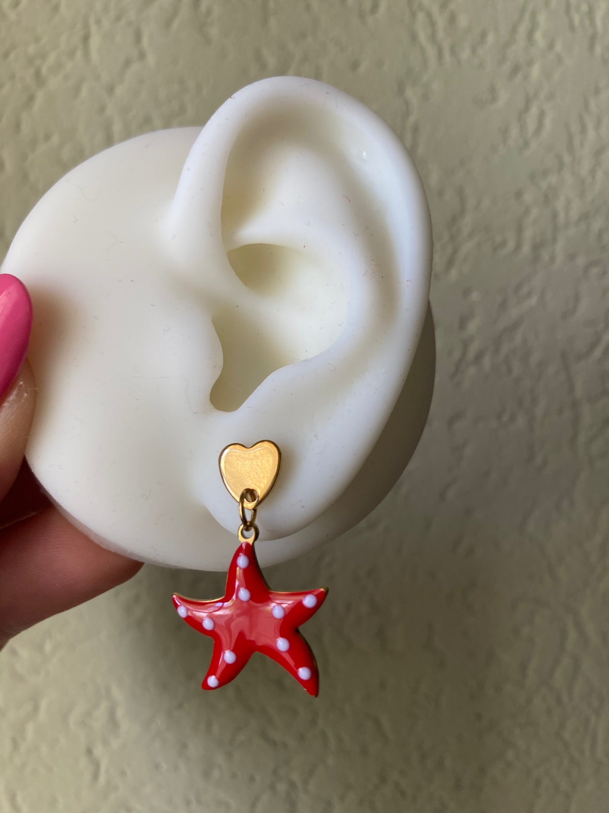 Gli orecchini Estate sono realizzati con pendenti in acciaio smaltati, alcuni abbinati agli orecchini a perno a forma di stella in acciaio, altri abbinati alla monachella sempre in acciaio dorata, altri all,orecchino a perno tondo piatto in acciaio, altri ancora agli orecchini cuore in accaiio!! Scegli il tuo preferitoo!!! Sono gli ultimi rimasti!!!!!
