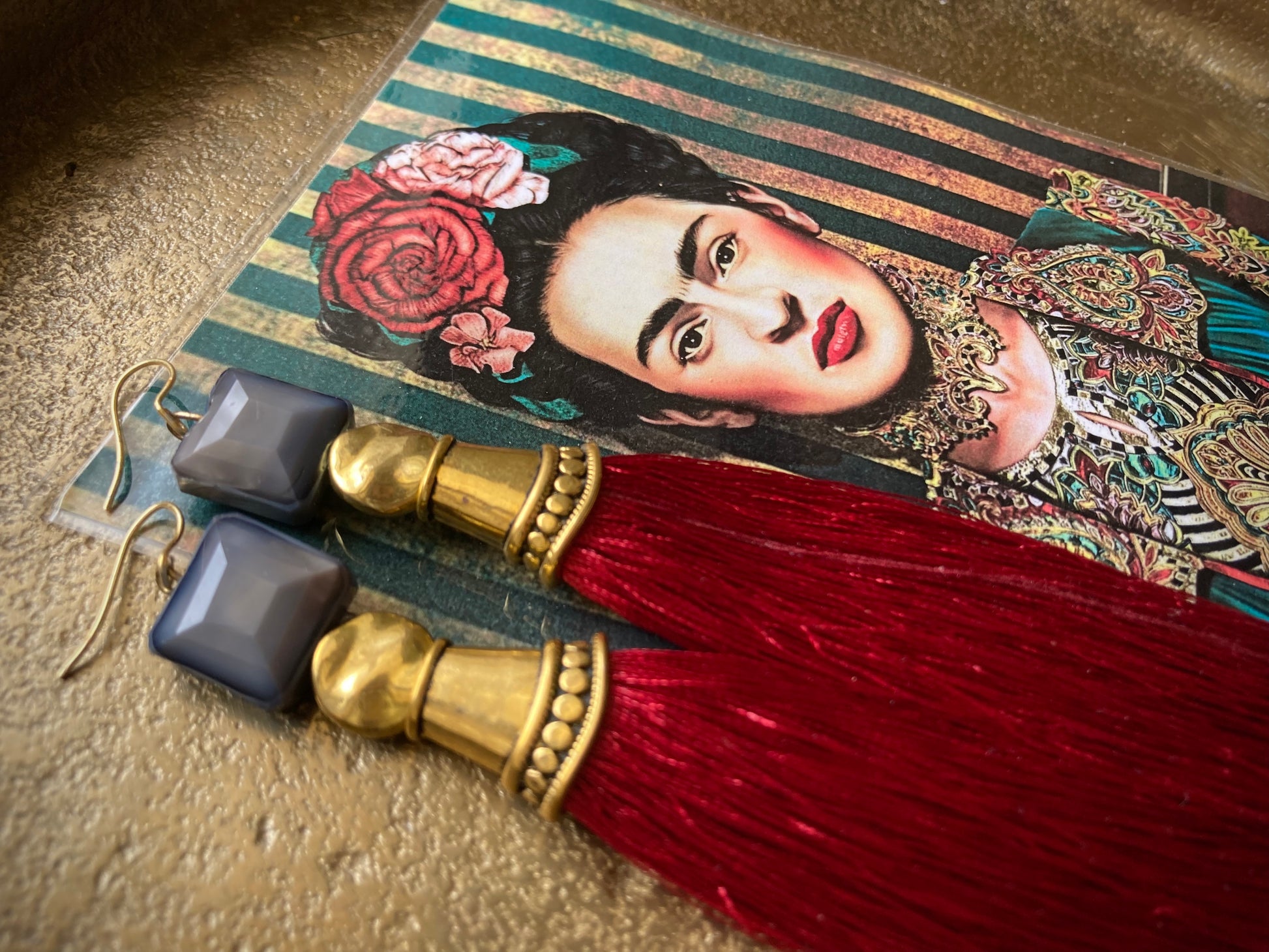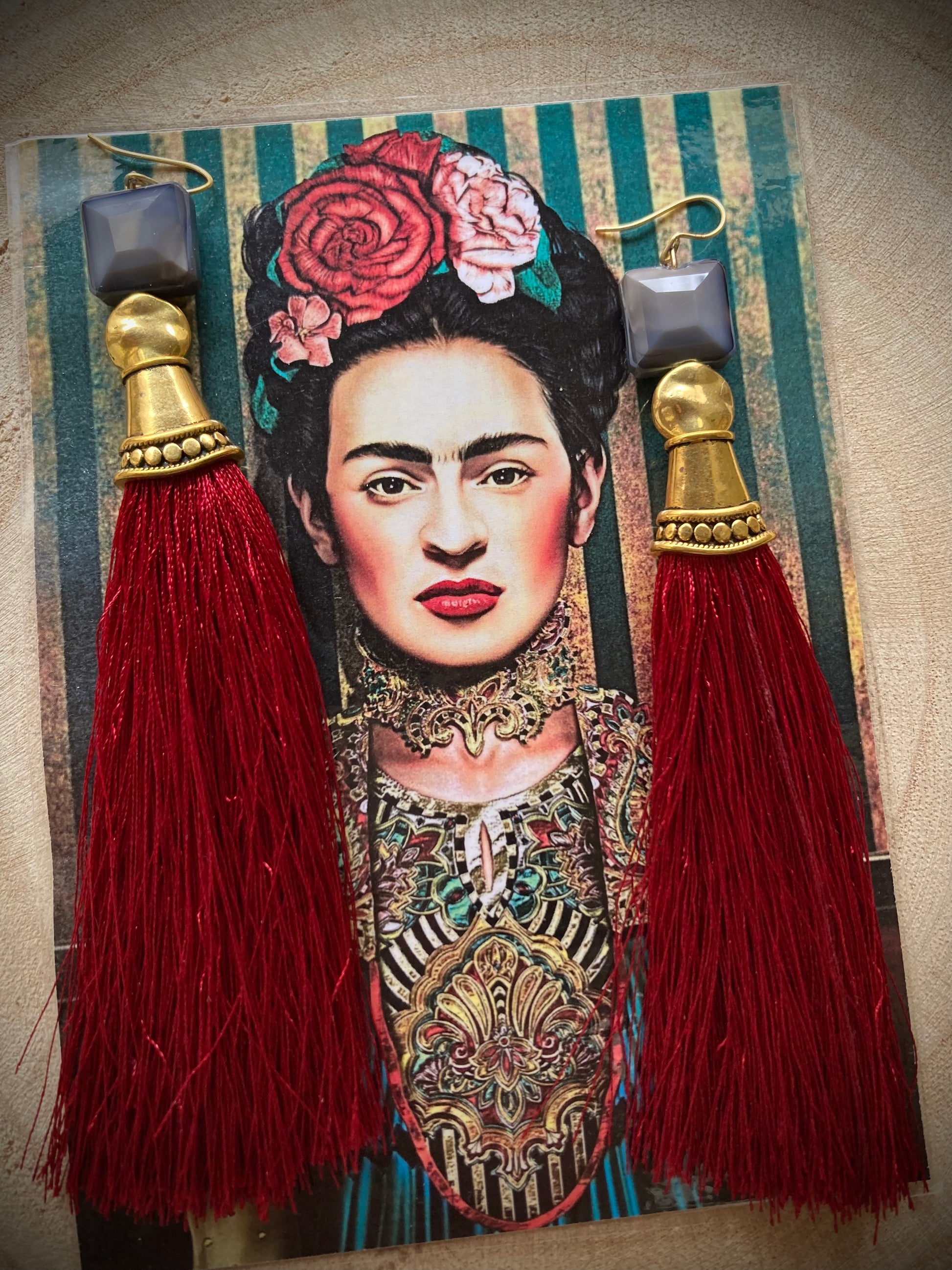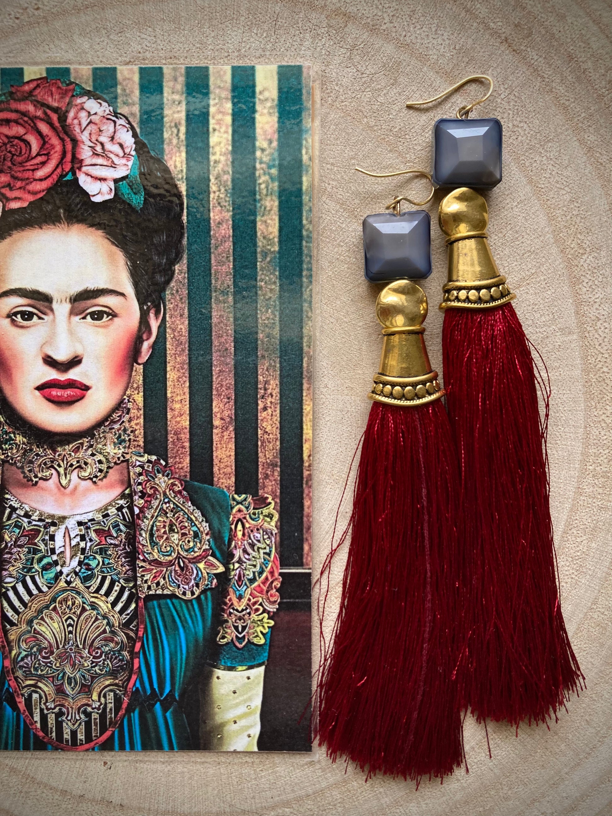 Un modello unico, molto particolare, per un look dove la parola d'ordine è OSARE!!! Nappe rosso bordeaux, cristalli grigii e metallo dorato....danno vita a questi orecchini lunghi 12cm, originali e pieni di stile!!