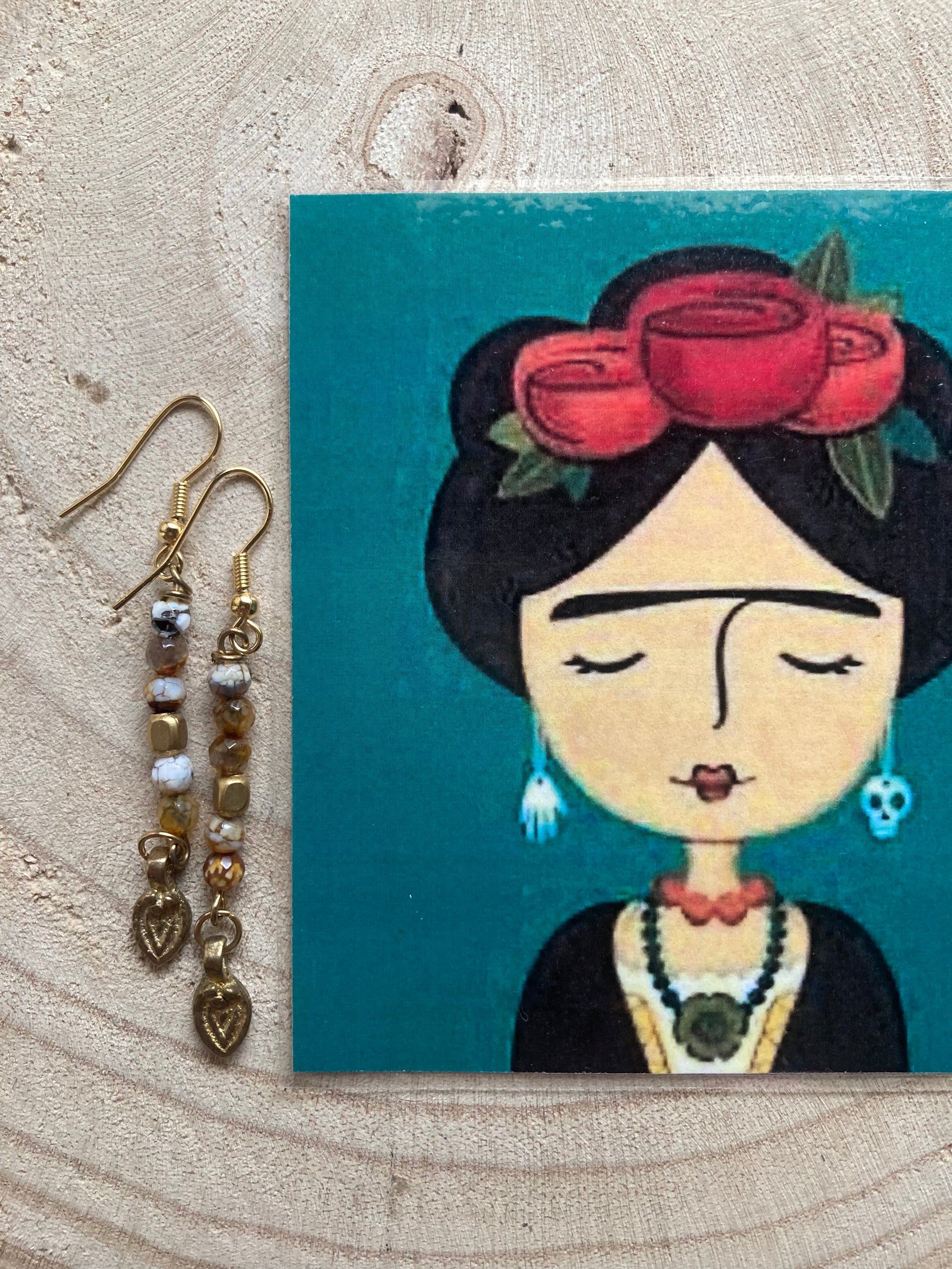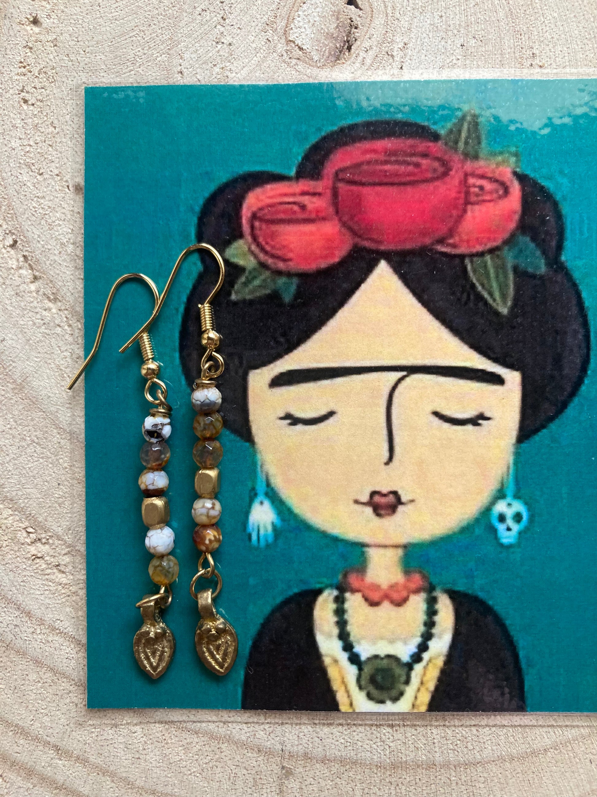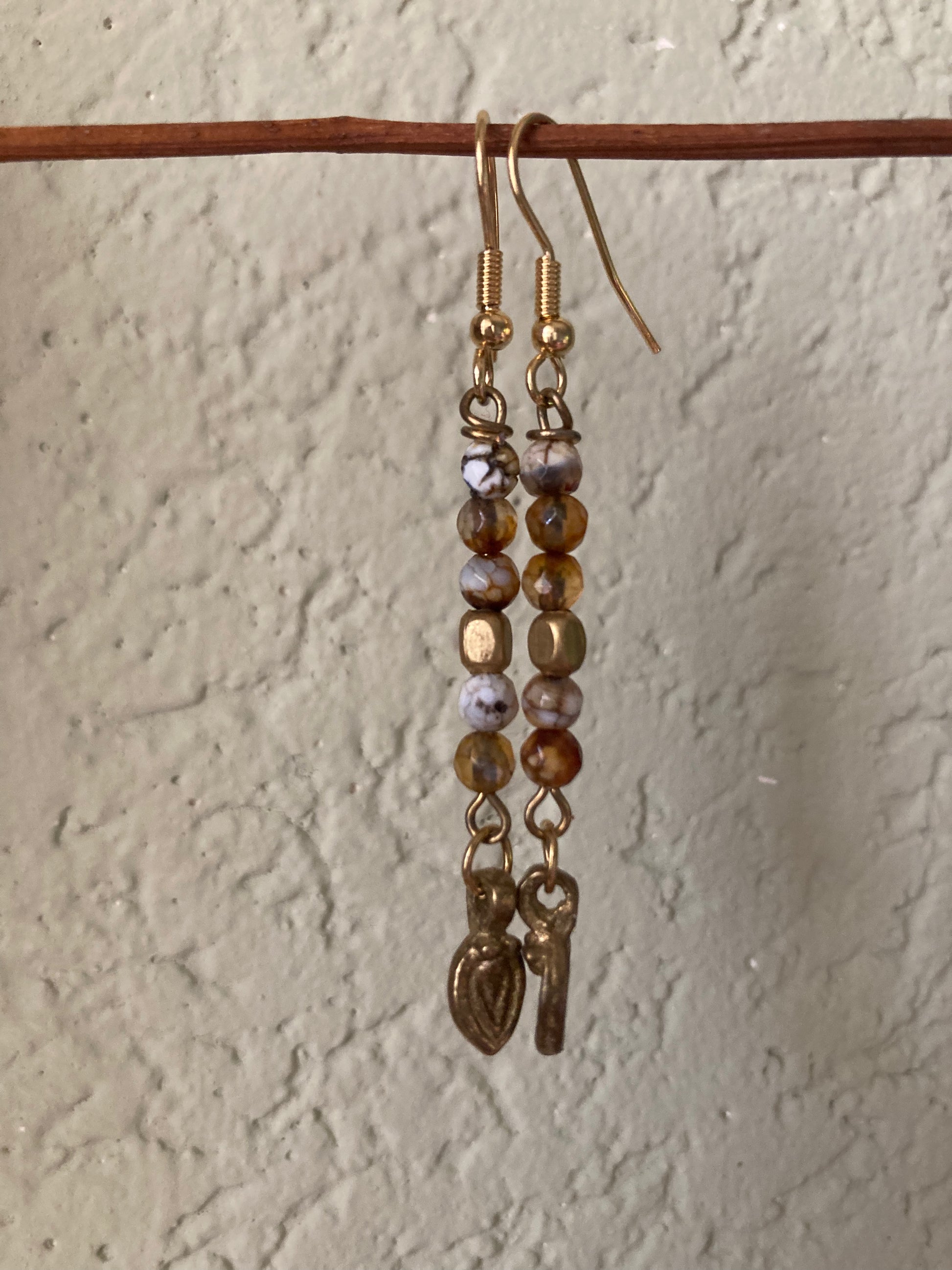 Orecchini realizzati a mano con pietre di Agata conchiglia e pepite in ottone