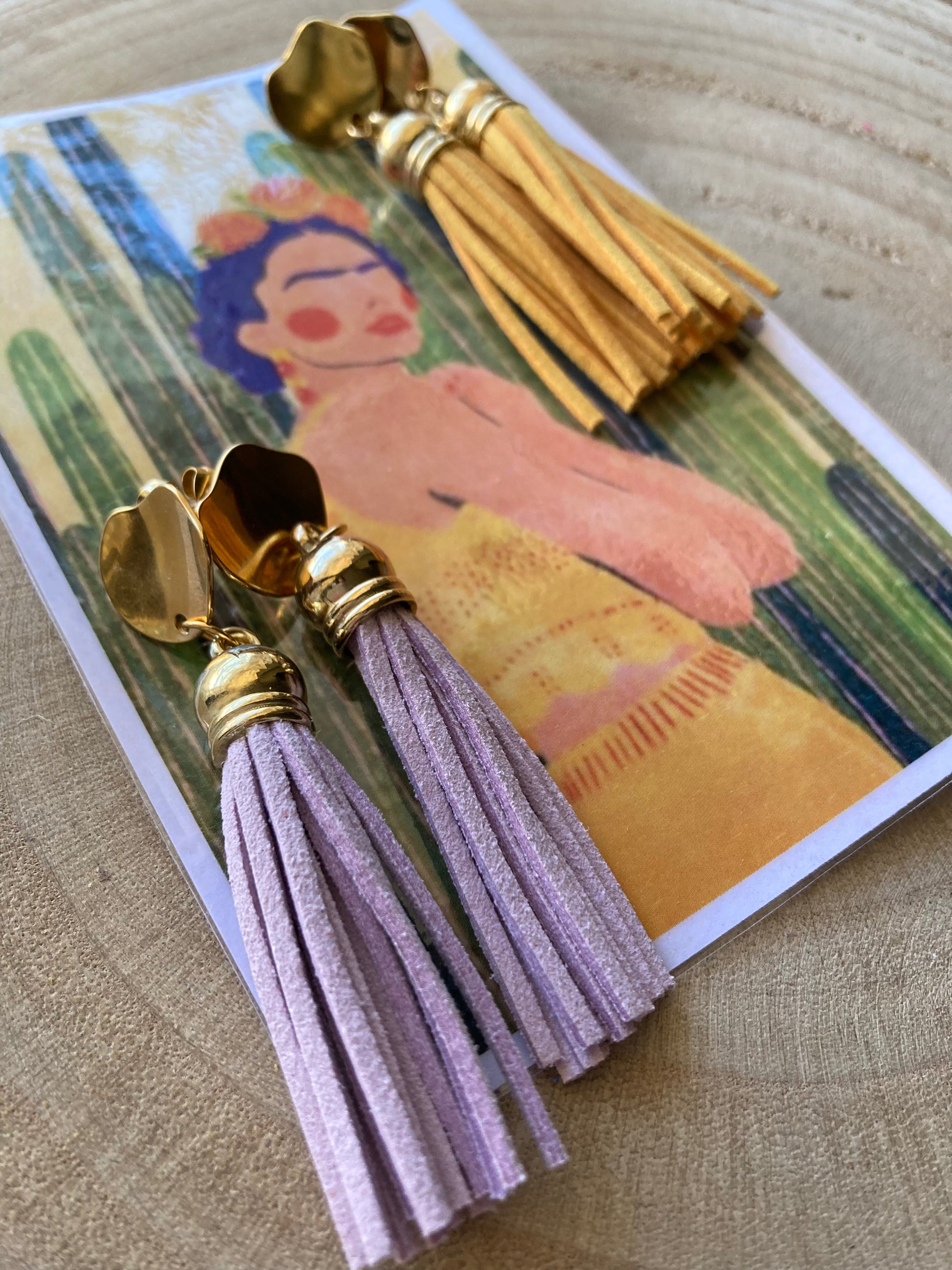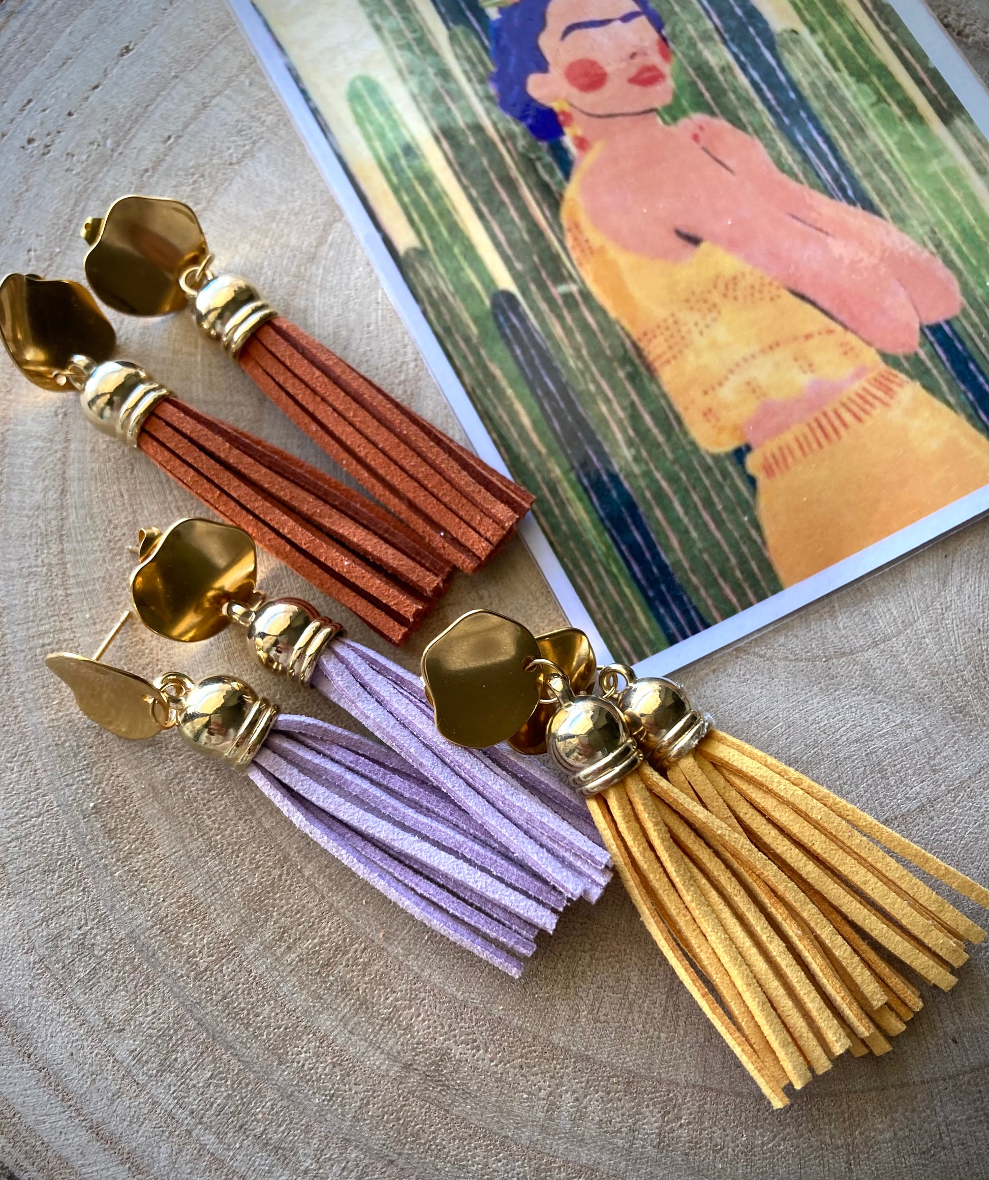 Se stai cercando colore, bellezza e cura nei dettagli.. questi orecchini fanno al caso tuo!!! Con una nappa in alcantara, in tre colorazioni diverse, per una lunghezza di 6cm.. potrai colorare e illuminre tutti i tuoi look e sbizzarrirti come più ti piace!!! L'orecchino è in acciaio inissidabile, quindi anallergico!