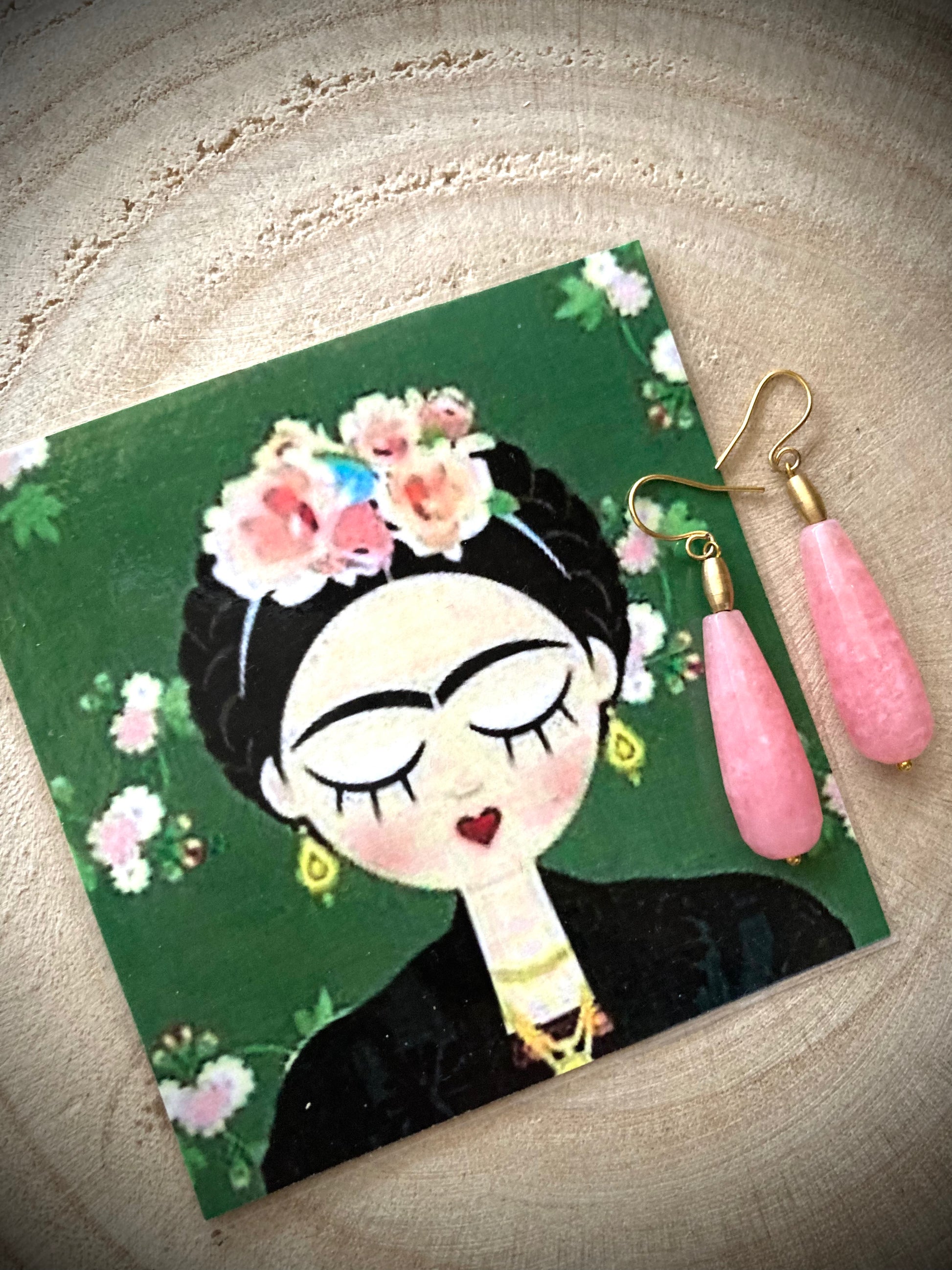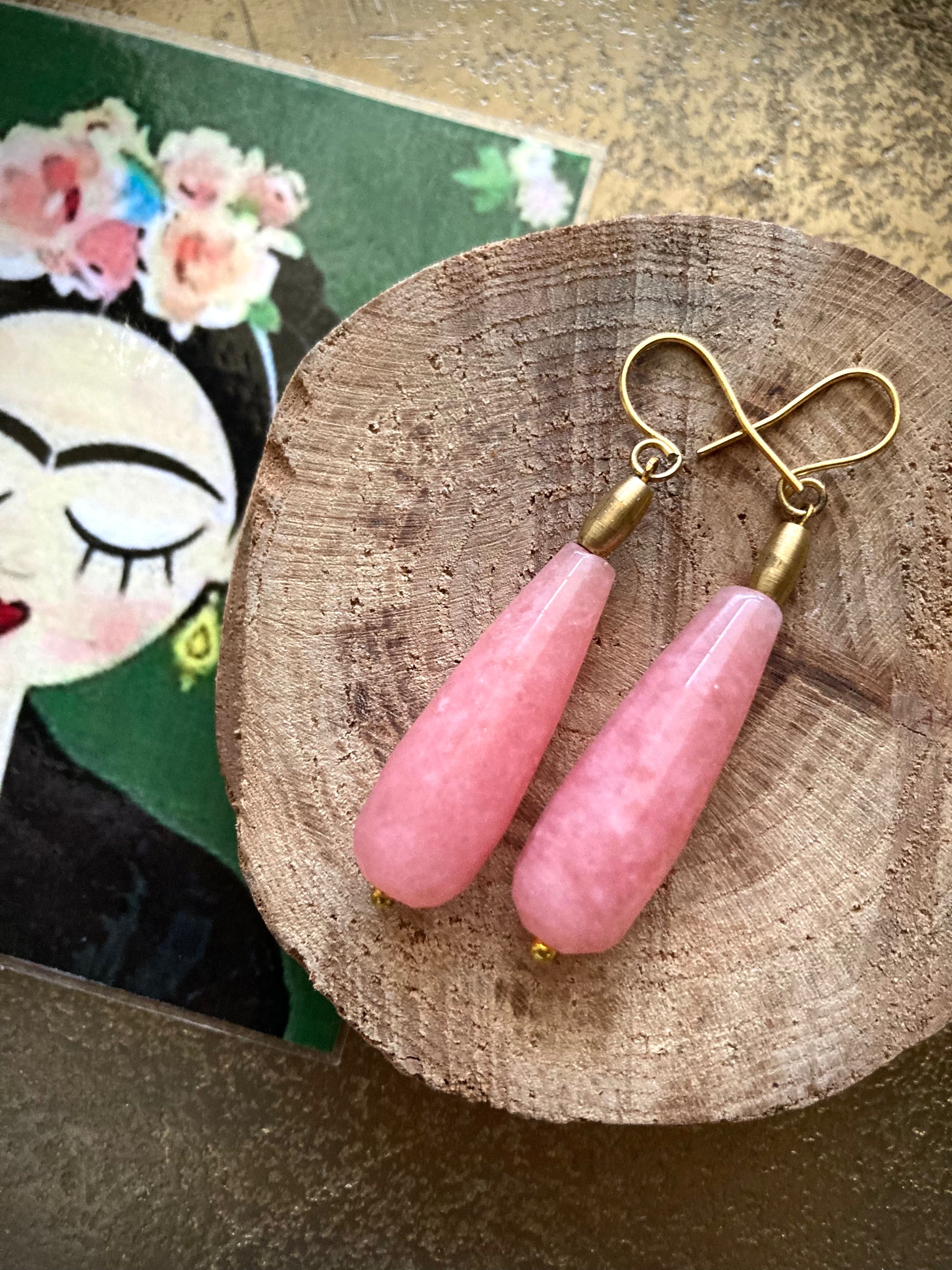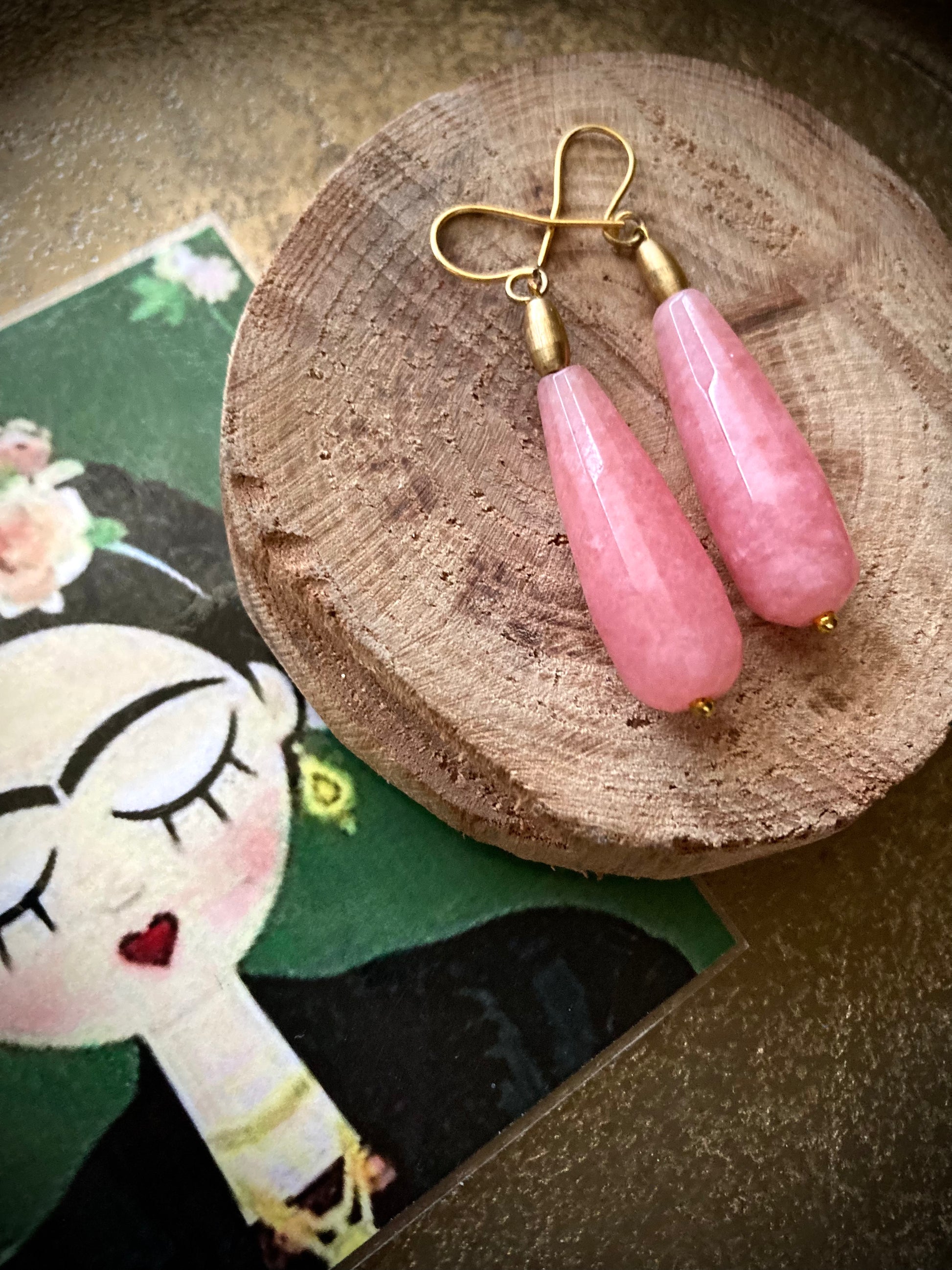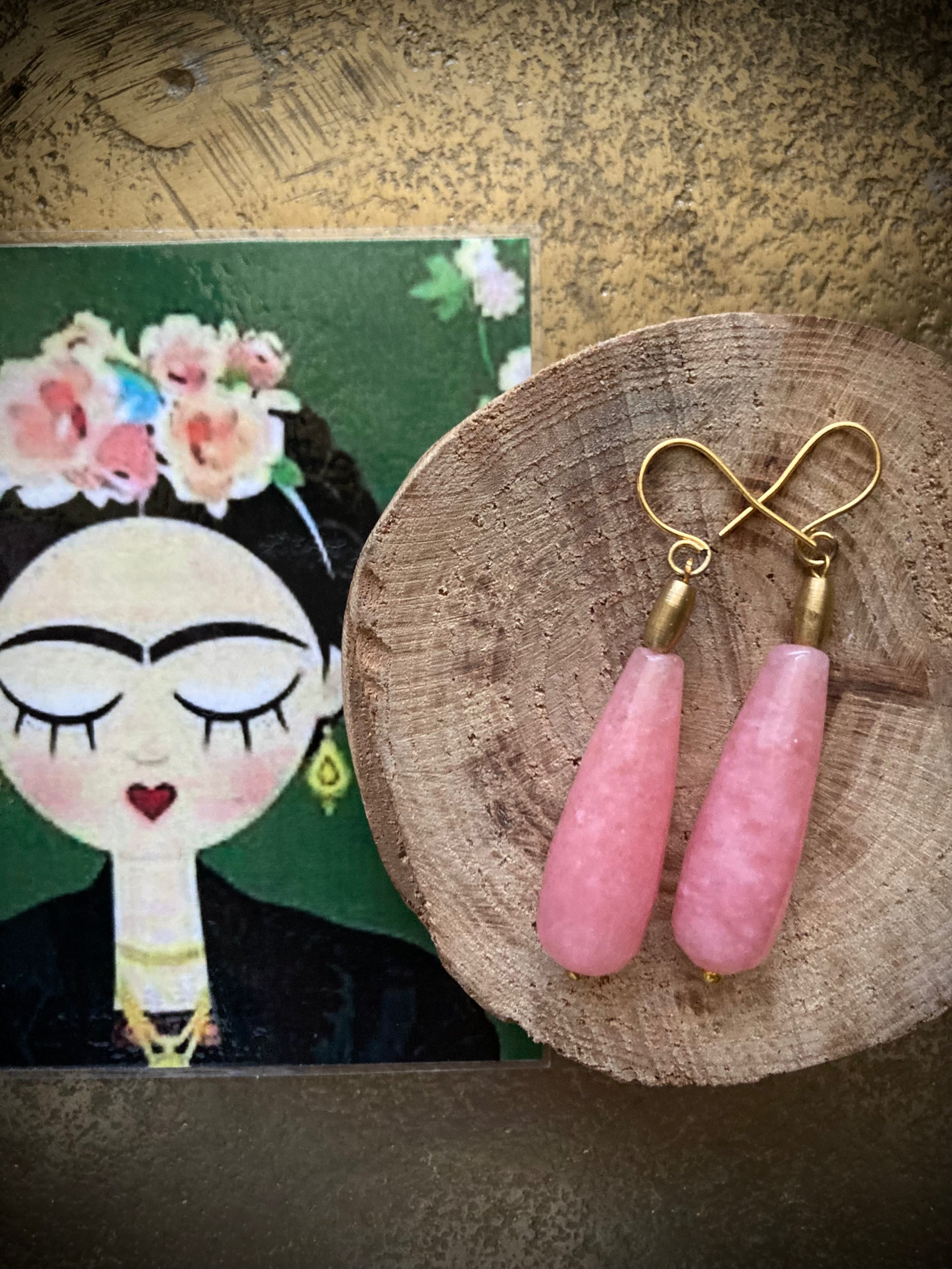 Orecchini realizzati a mano con pietra di Giada rosa e pepita in ottone