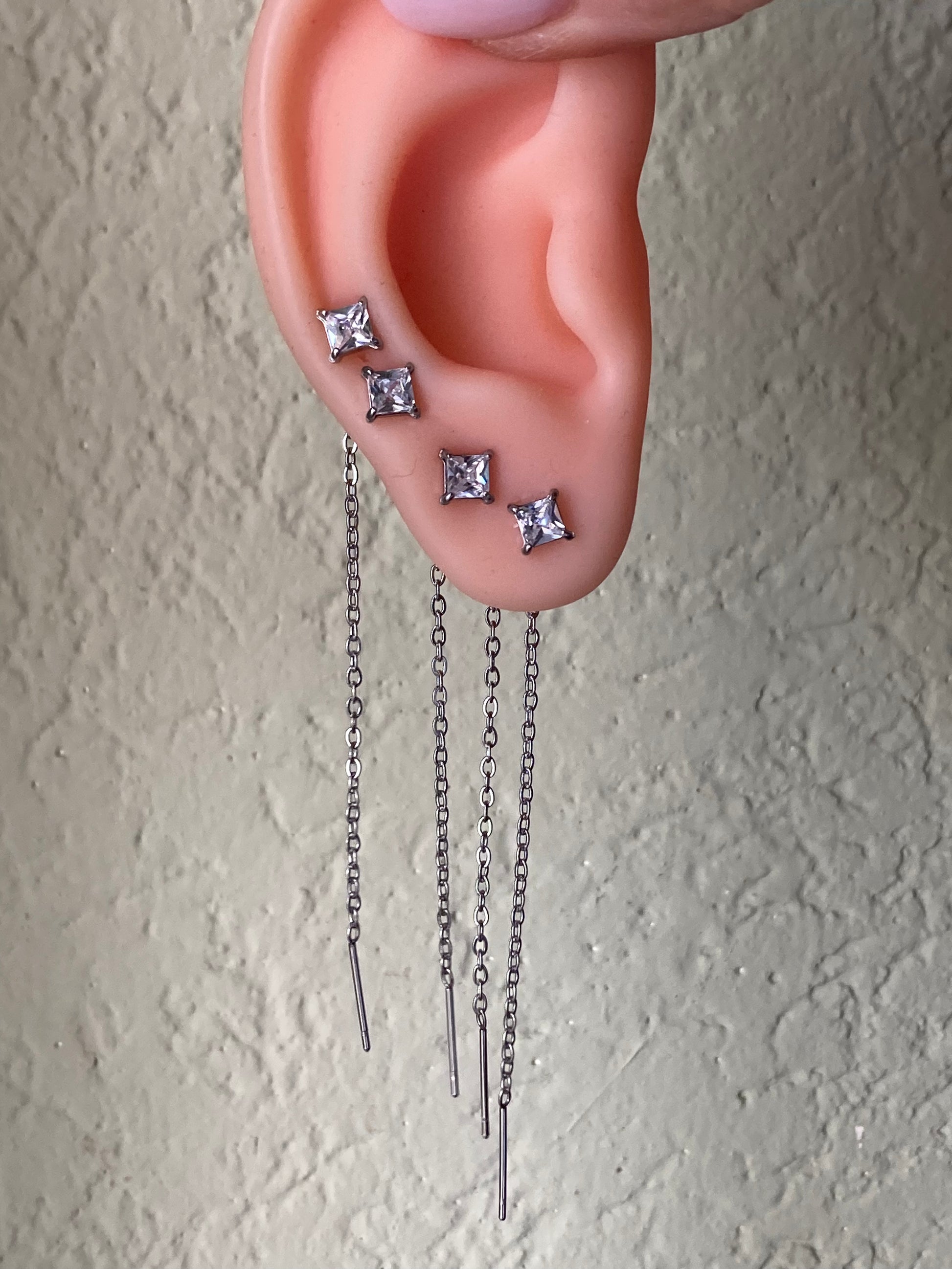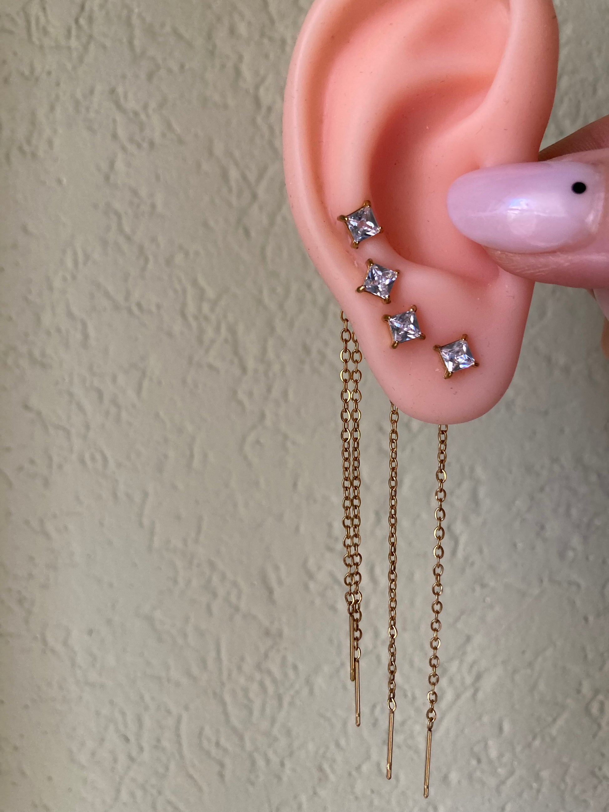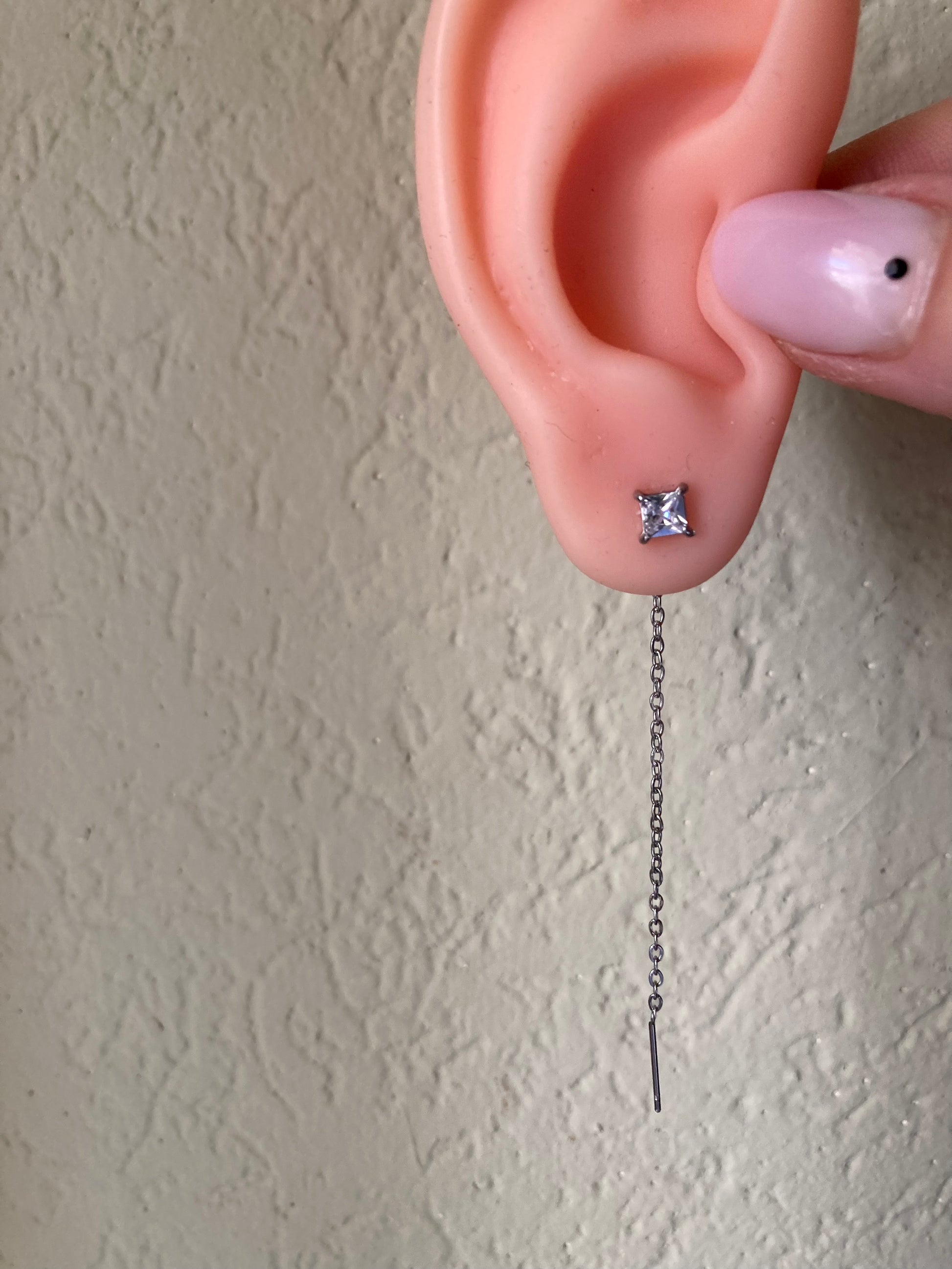 L'orecchino ha questo punto luce, uno zircone, bellissimo, quadrato, più grande rispetto all'orecchino Cascata Luna e al contrario di quest'ultimo non ha zirconi lungo la catena pendente!