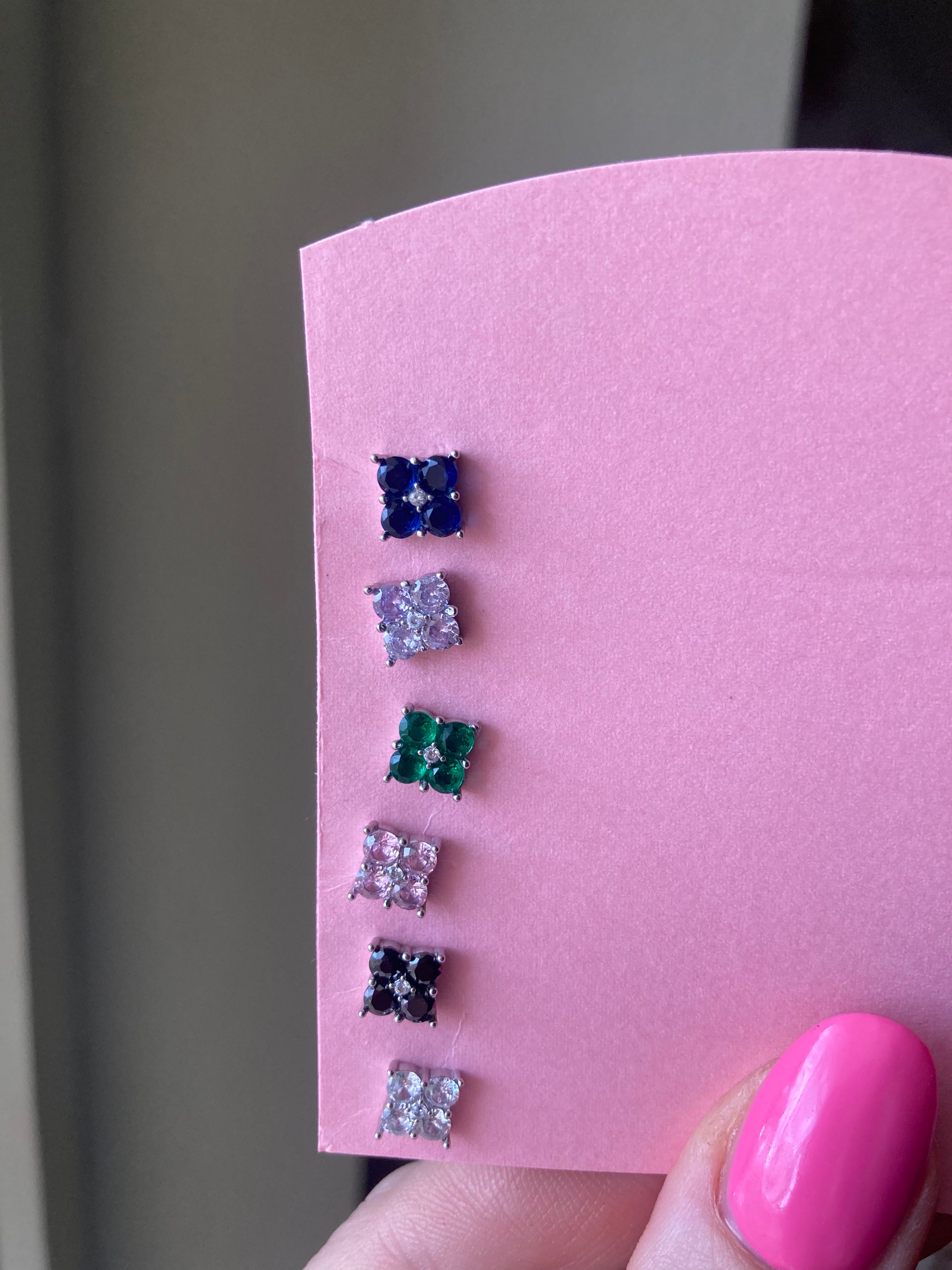 Orecchino punto luce!!! Un piccolo quadrato con zirconi colorati! Puoi indossarlo al primo, secondo, terzo foro, in acciaio, viene vfenduto singolarmente!