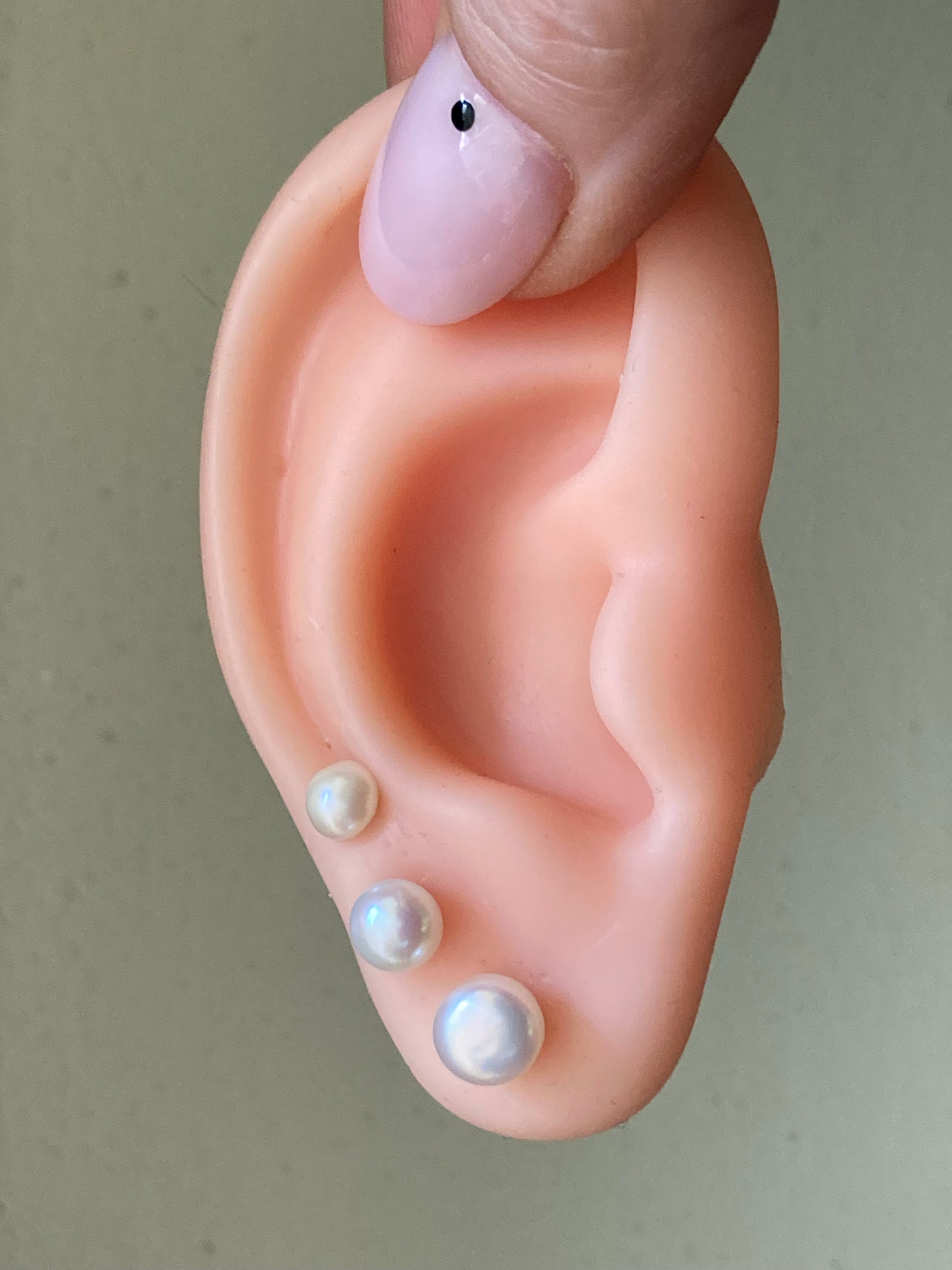 Set composto da tre orecchini, ognuno diverso dall'altro nella grandezza, ideali per realizzare abbinamenti, da mettere nei secondi fori.